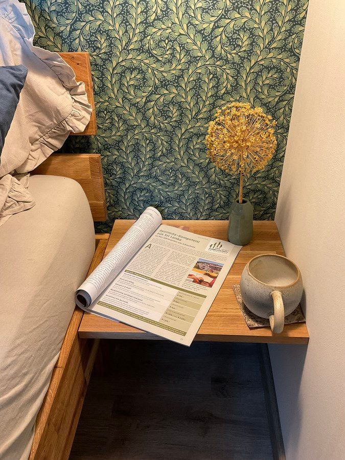 Das neue Eichenbett schenkt mit seiner 140 x 200cm Matratze mit Taschenfedern auch Allergikern einen erholsamen Schlaf. Selbstverständlich ist auch die Bettwäsche frei von Allergenen.
