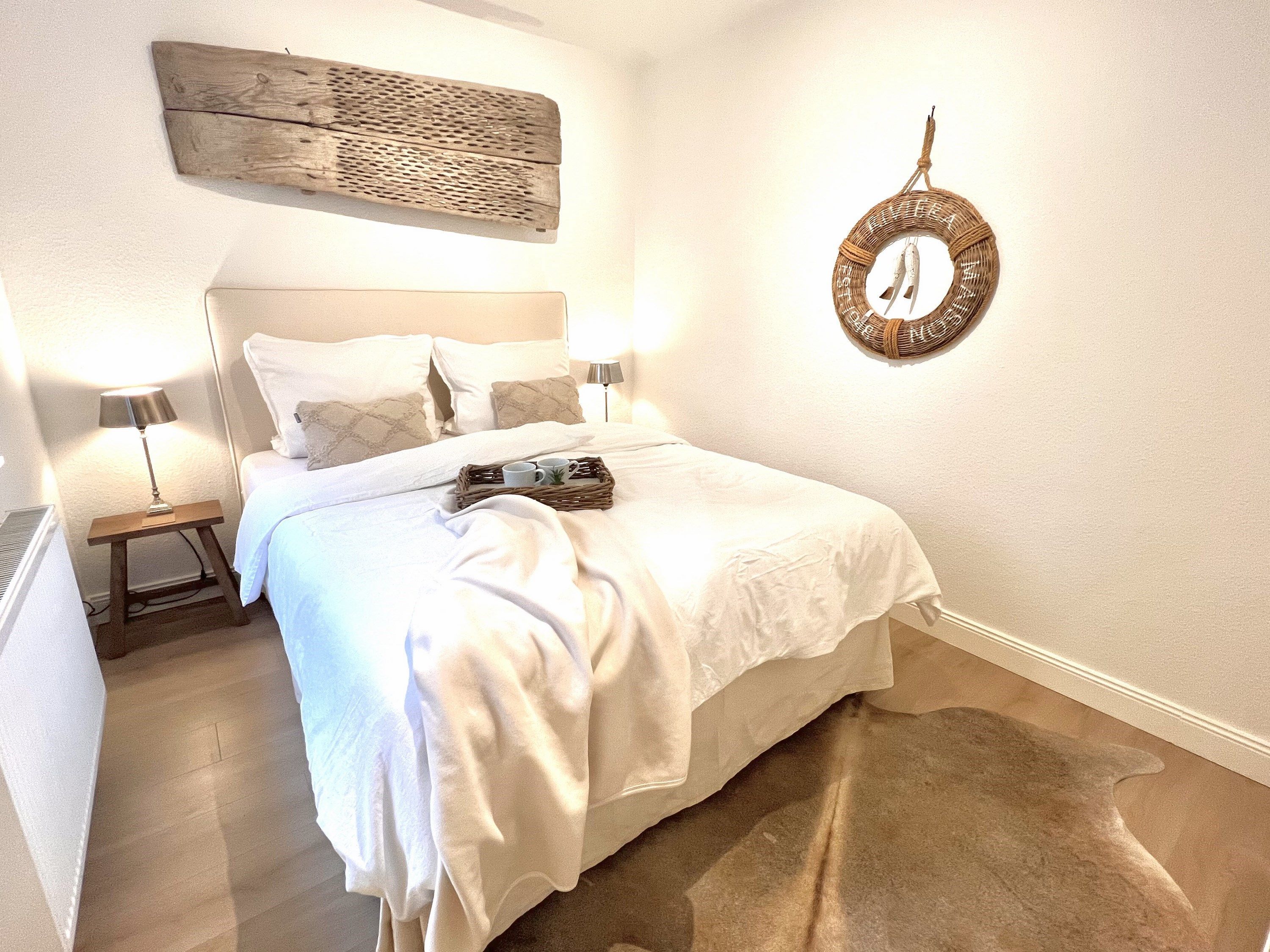 - 1. Schlafzimmer mit Boxspringbett (1,80 x 2,00 m), Kleiderablage mit Schubfächer