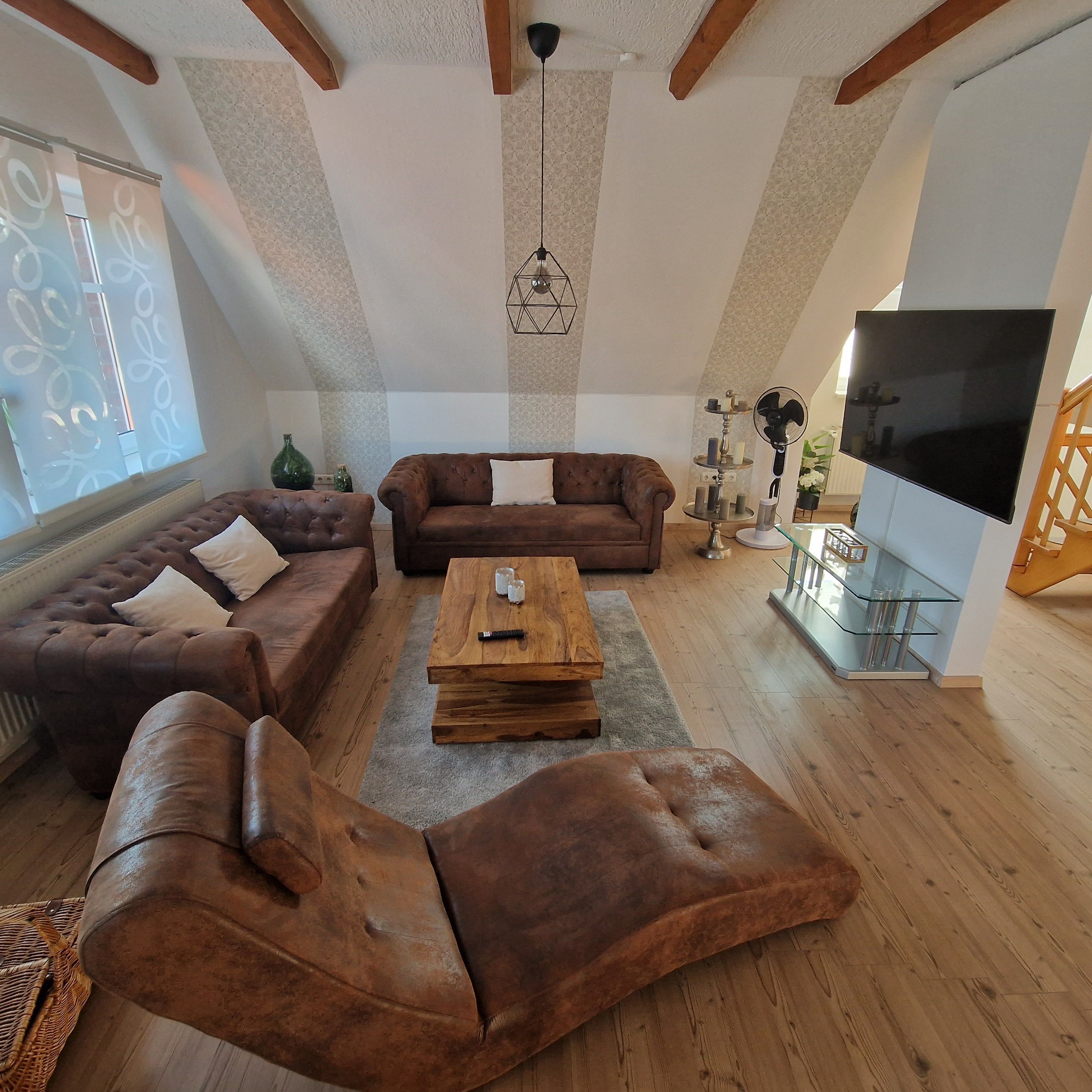 Mitten im Seemannsort Barßel und nur 400 Meter entfernt vom Hafen befindet sich die Ferienwohnung Lerchi´s Ankerplatz. Die mit Liebe und modere eingerichtete Ferienwohnung über 3 Etagen bietet auf ca.120qm Platz für 6 Personen ( 3 Schlafzimmer) und bietet ihnen ein Rückzugsort zum Wohlfühlen. Die Ferienwohnung ist vollständig ausgestattet. Bettwäsche, Handtücher und WLAN sind vorhanden. Auf dem großen Balkon können sie beim Grillen oder bei einem Glas Wein den Abend ausklingen lassen.