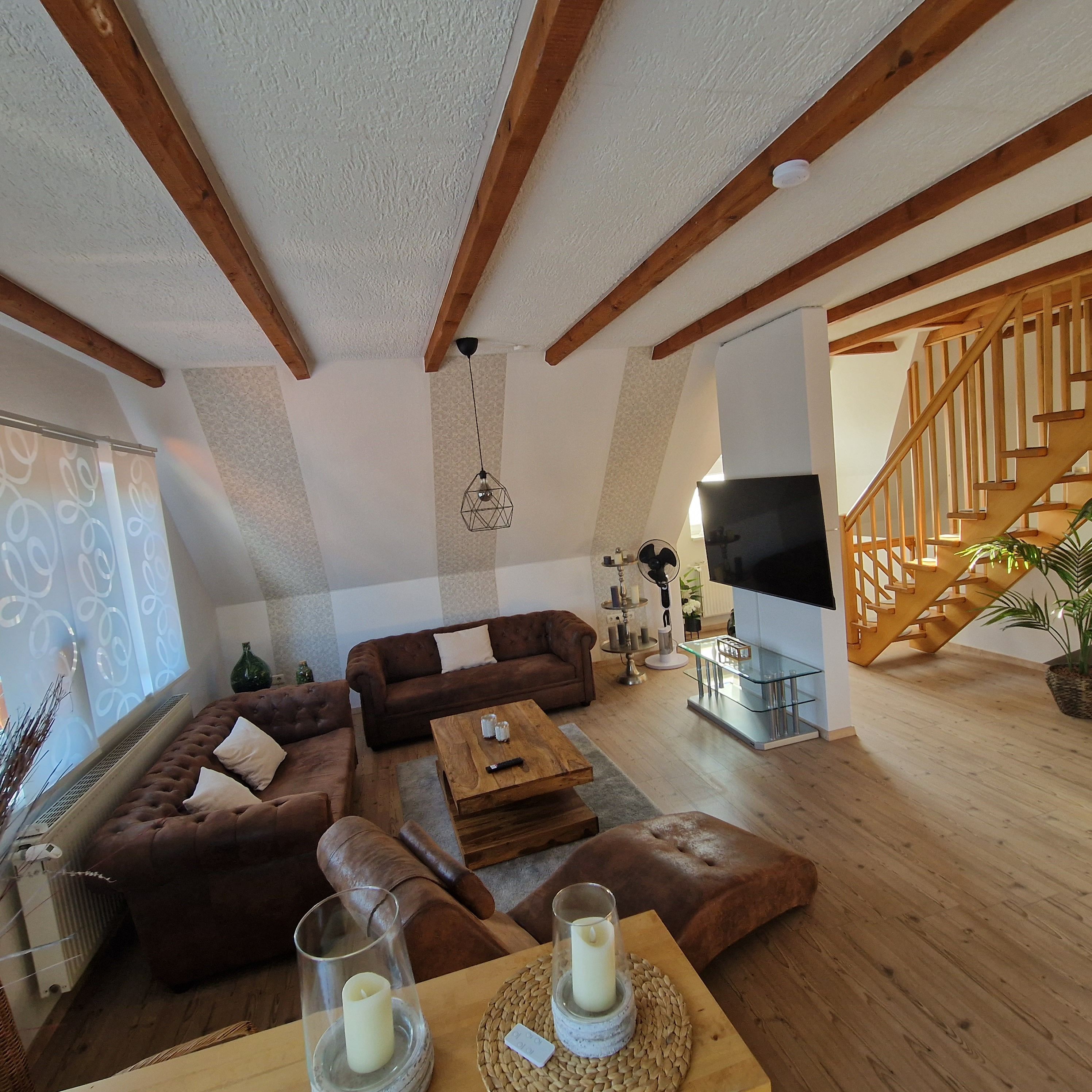 Die Ferienwohnung ist modern eingerichtet und voll ausgestattet. Auf 120qm finden bis 6 Personen eine gemütliche Unterkunft zum Wohlfühlen vor. Ein Babybett steht ebenfalls zur Verfügung. Der große Süd-Balkon lädt zum Verweilen ein. Bettwäsche, Handtücher und WLAN sind vorhanden.