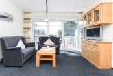Größe ca. 60 Quadratmeter, Wohnraum mit integrierter Küche, Schlafzimmer, zweites separates Schlafzimmer/Kinderzimmer, Badezimmer mit Dusche, Waschtisch und WC, Obergeschoss, Balkon, Koffer-/Abstellraum, optimal für 2 bis 3 Personen.