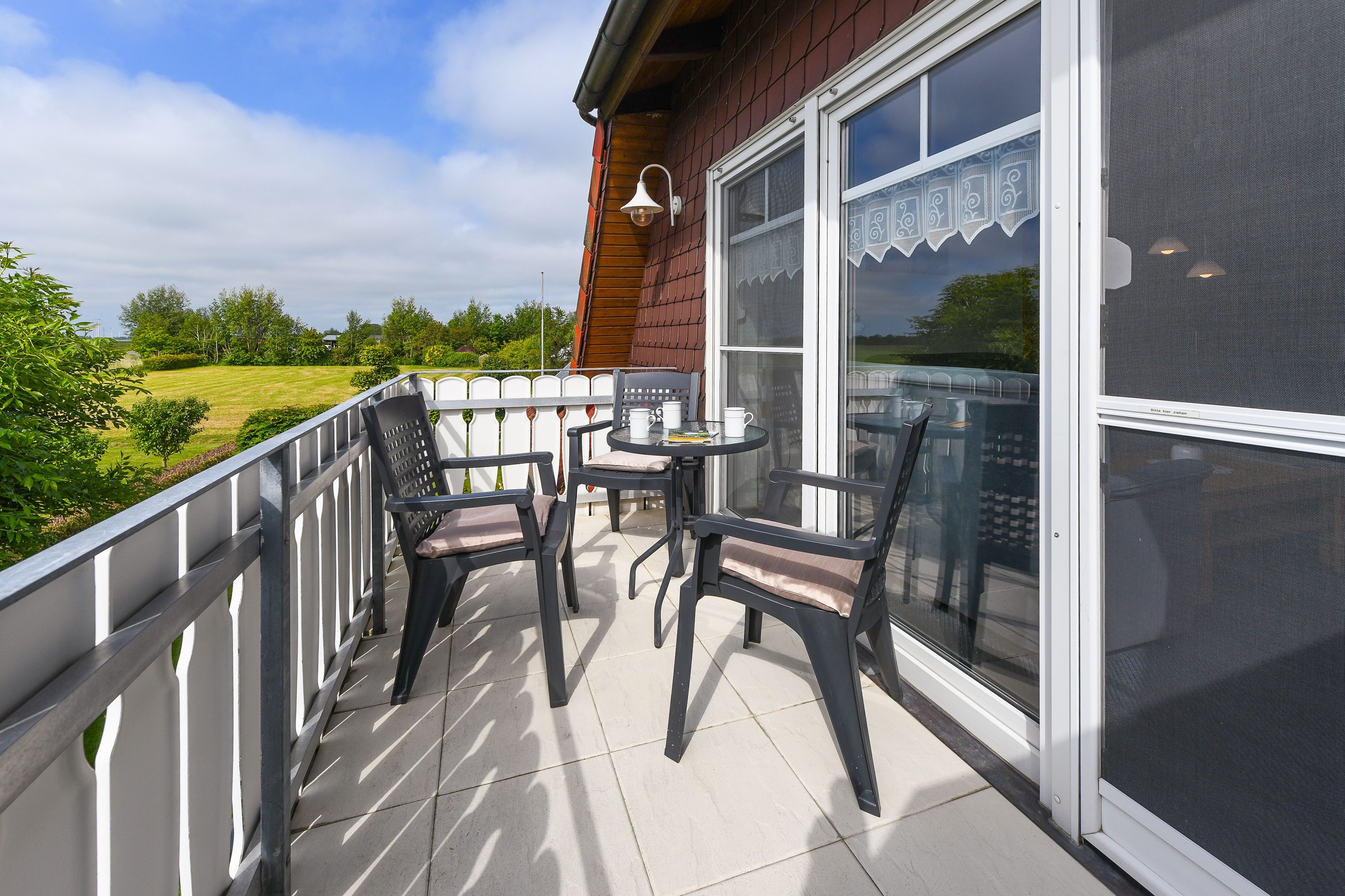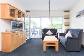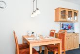Größe ca. 60 Quadratmeter, Wohnraum mit integrierter Küche, Schlafzimmer, zweites separates Schlafzimmer/Kinderzimmer, Badezimmer mit Dusche, Waschtisch und WC, Obergeschoss, Balkon, Koffer-/Abstellraum, optimal für 2 bis 3 Personen.