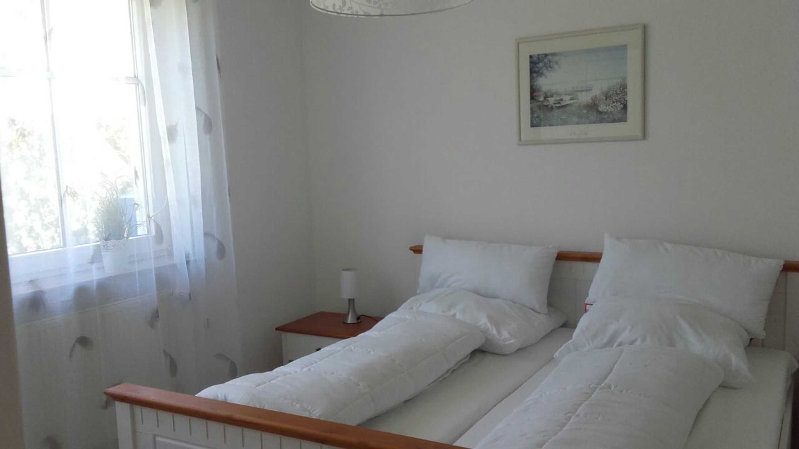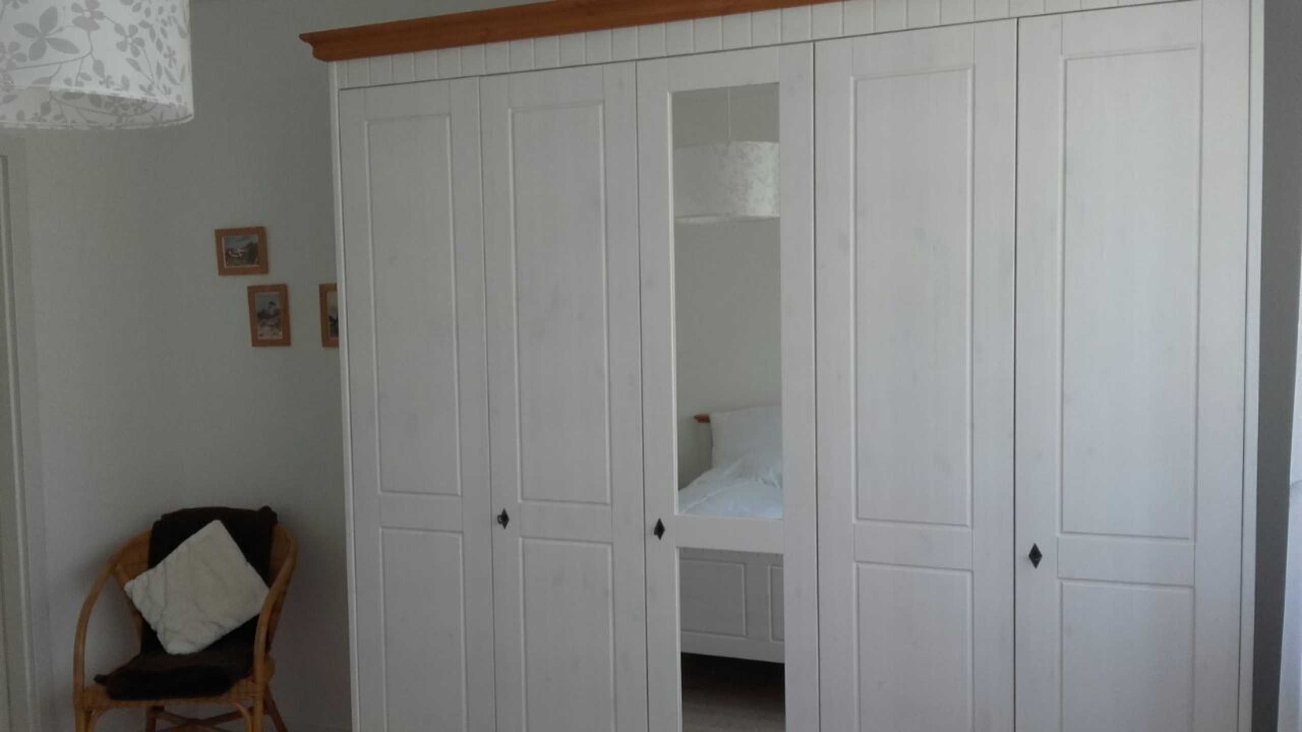 Im Schlafzimmer erwartet Sie ein komfortables Doppelbett (1,80 m x 2,00 m) sowie ein großer Kleiderschrank mit viel Stauraum. Bettwäsche und Handtücher bringen Sie bitte selbst mit.