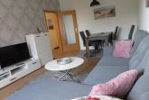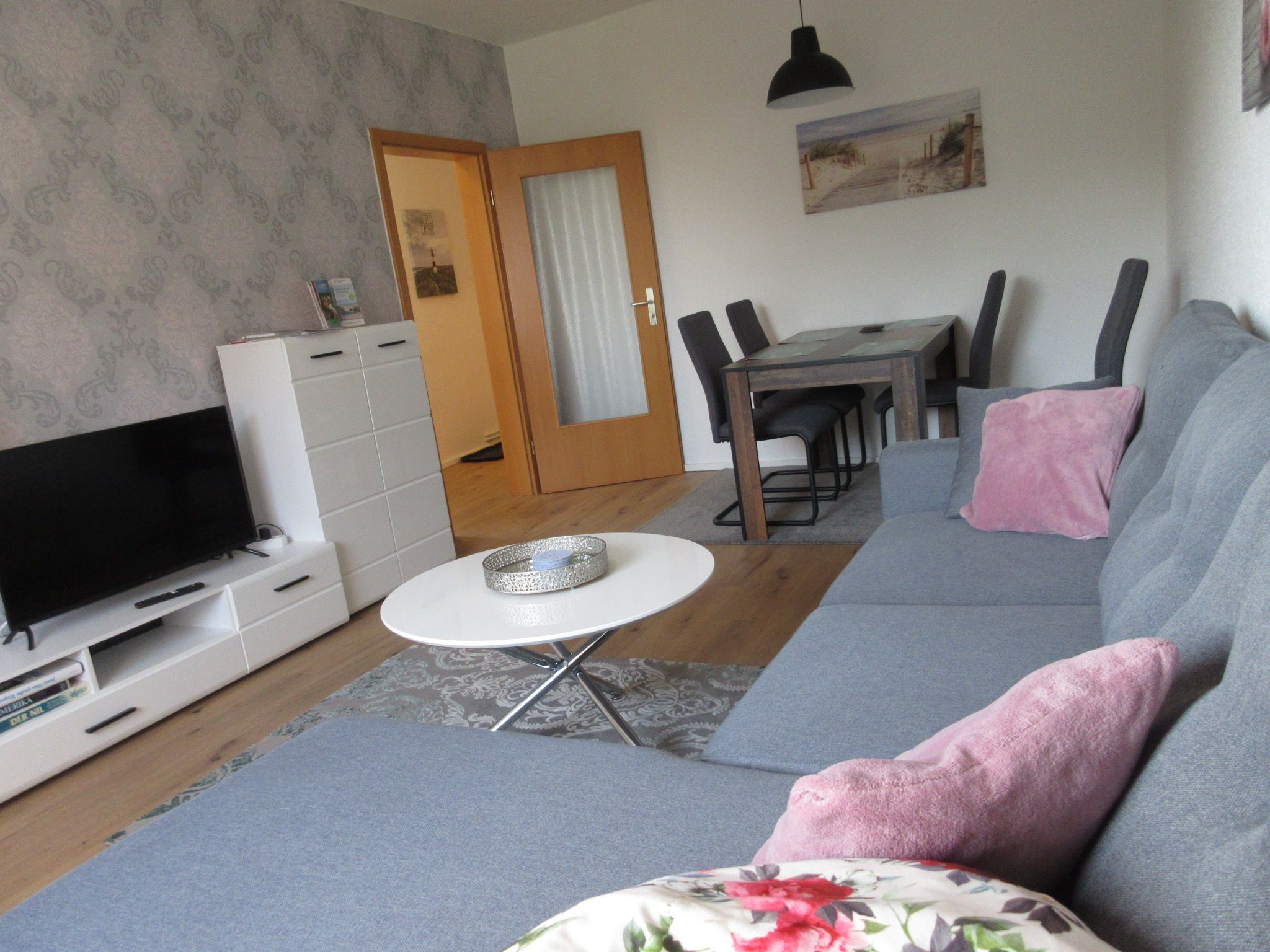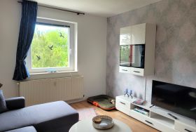 Die renovierte 49m große 2-Raum-Wohnung befindet sich im 1. OG (Treppe) und bietet Platz für 3 Personen mit maximal 2 Hunden. Die hundefreundliche Ferienwohnung verfügt über ein Schlafzimmer mit Doppelbett (1,80m breit) und großem Kleiderschrank. Das moderne Wohnzimmer verfügt über einen Smart-TV (Satellitenanschluß und IInternet), ein gemütliches Ecksofa (Aufbettung 3. Person) und einen großzügigen Esstisch für 4 Personen. Sollte statt der Schlafcouch lieber ein Zustellbett gewünscht sein, wird dieses kostenfrei zur Verfügung gestellt.