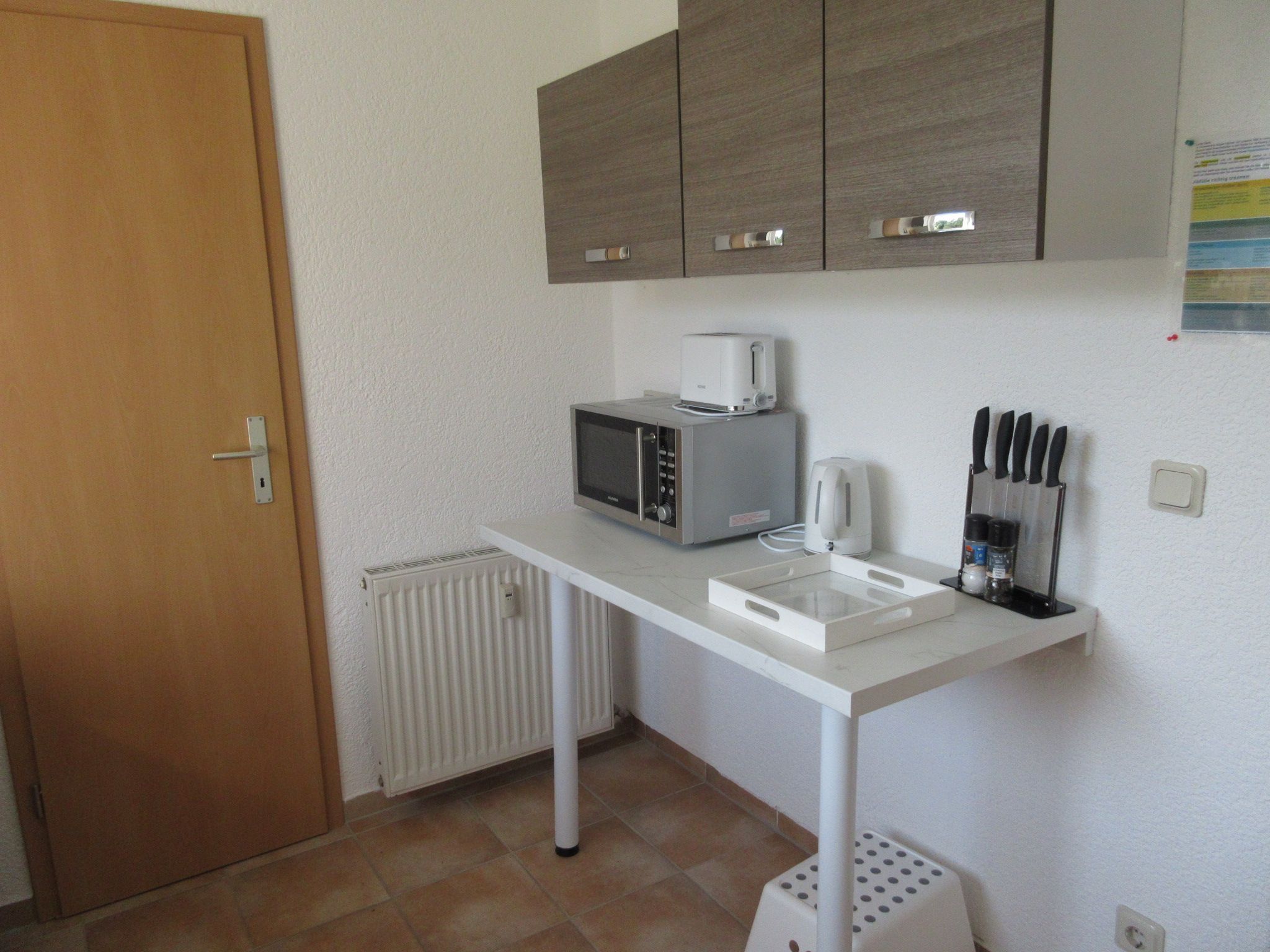 Die moderne Küche ist ausgestattet mit Cerankochfeld, Backofen, Mikrowelle, Kühl- & Gefrierschrank und ist mit allem notwendigen wie Toaster, Kaffeemaschine, Wasserkocher, Geschirr, Besteck, Töpfen etc. .