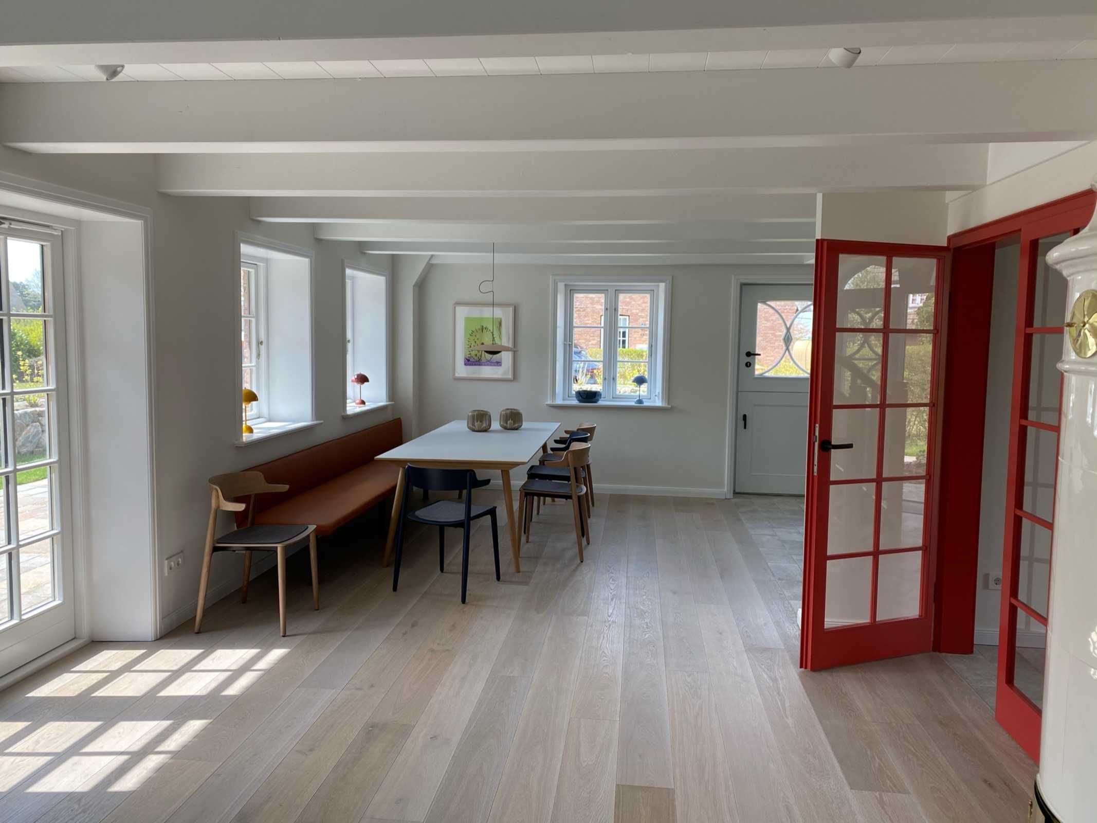 Frigga ist die größere Hälfte eines neuen Reetdachhauses (2021) in Nieblum/Föhr. Außen klassisches Friesenhaus, innen jung und modern. 3 Schlafzimmer (plus Gästezimmer (Bettsofa) und Kinderbett (DG). Keller große Sauna mit Ruheraum und Fitnessraum (ab Juli 2021). WLAN/Sonos-Anlage/3 Fernseher (Wohnzimmer/Fitness/DG). Dicht zum Strand und nah zum Ortskern - aber ab vom Trubel!