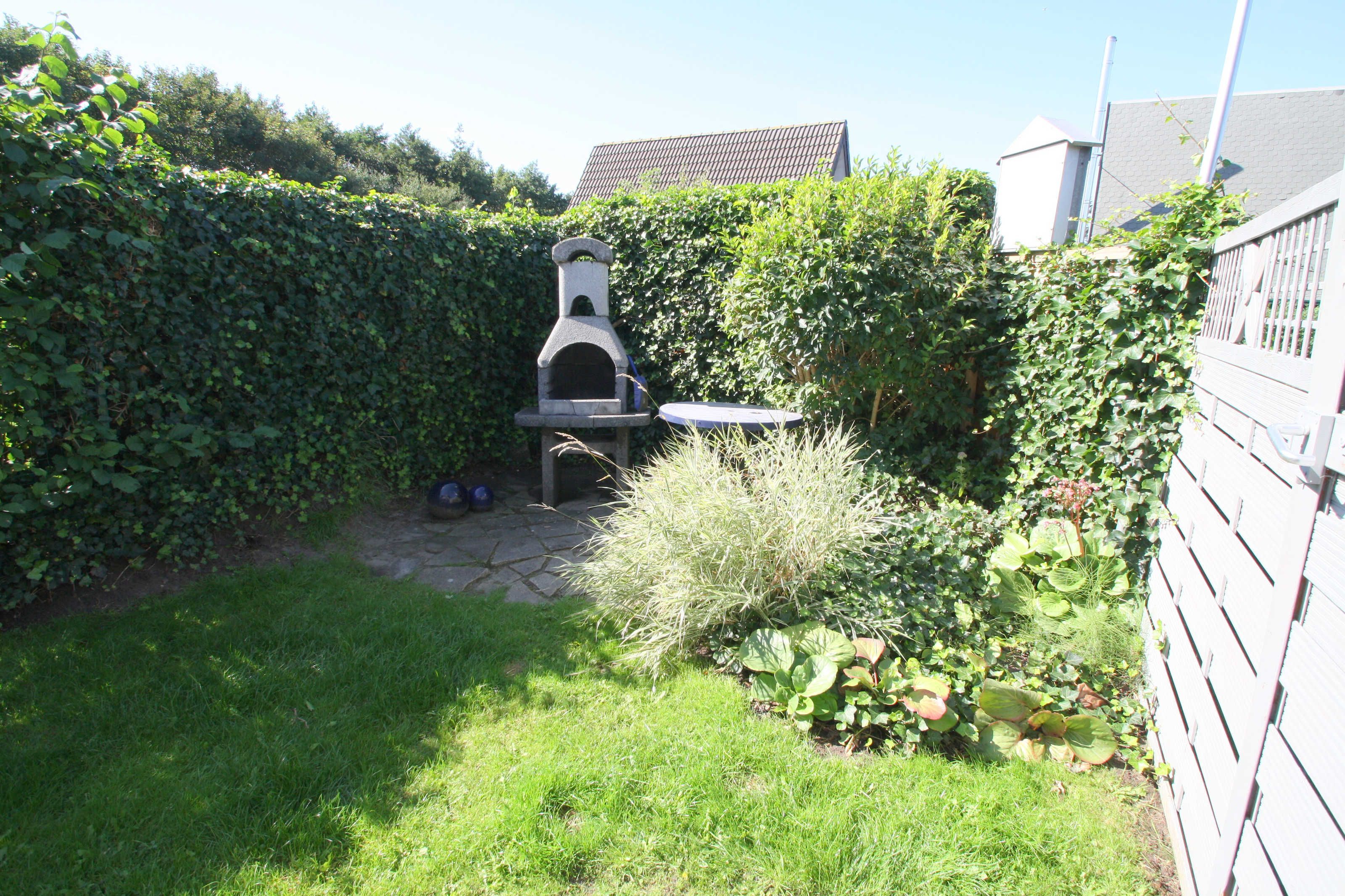 ca. 220m² großer eingezäunter Garten,(Stabmattenzaun, ca 140 cm hoch)  schöne Terrasse, Grillkamin, Gartenmöbel, 1 PKW-Stellplatz, Abstellraum für Fahrräder