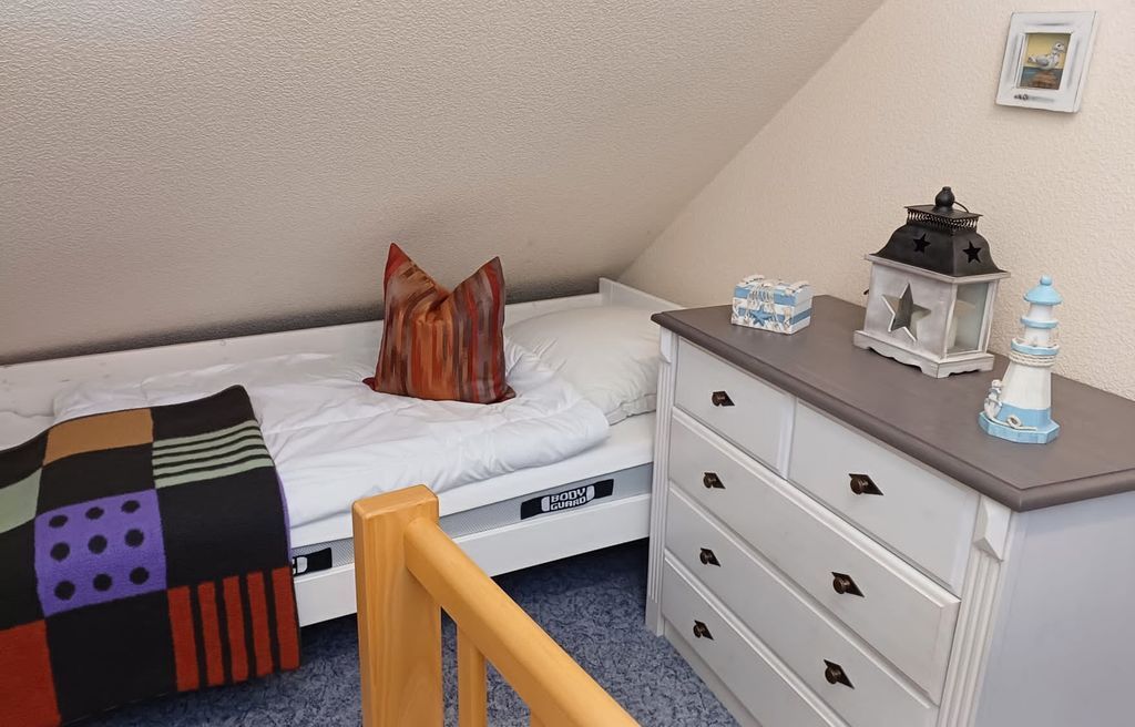 Diese gemütliche Ferienwohnung im Haus Jupiter ist ca. 58 m² groß und auf 2 Ebenen verteilt. Sie ist komplett eingerichtet und ideal für 4 Personen und ein Kind im Kinderreisebett.