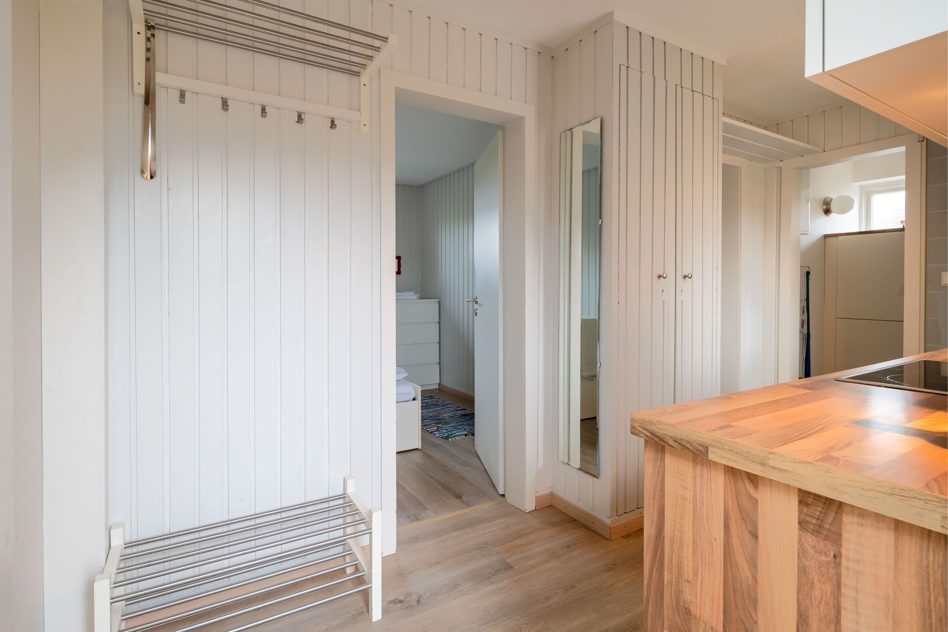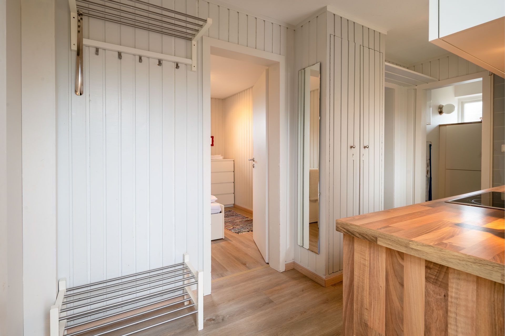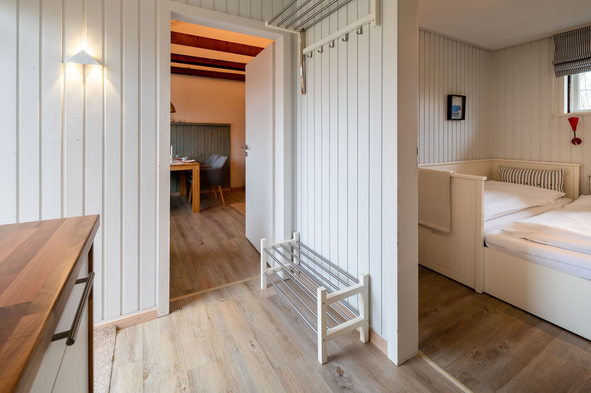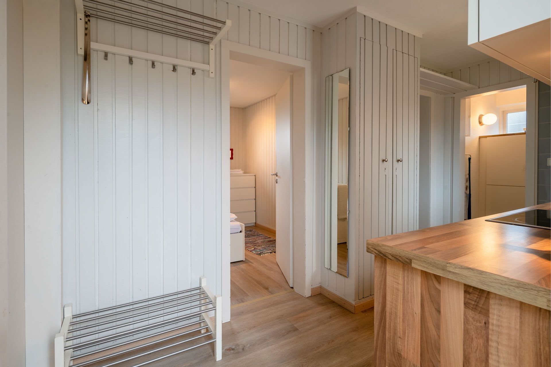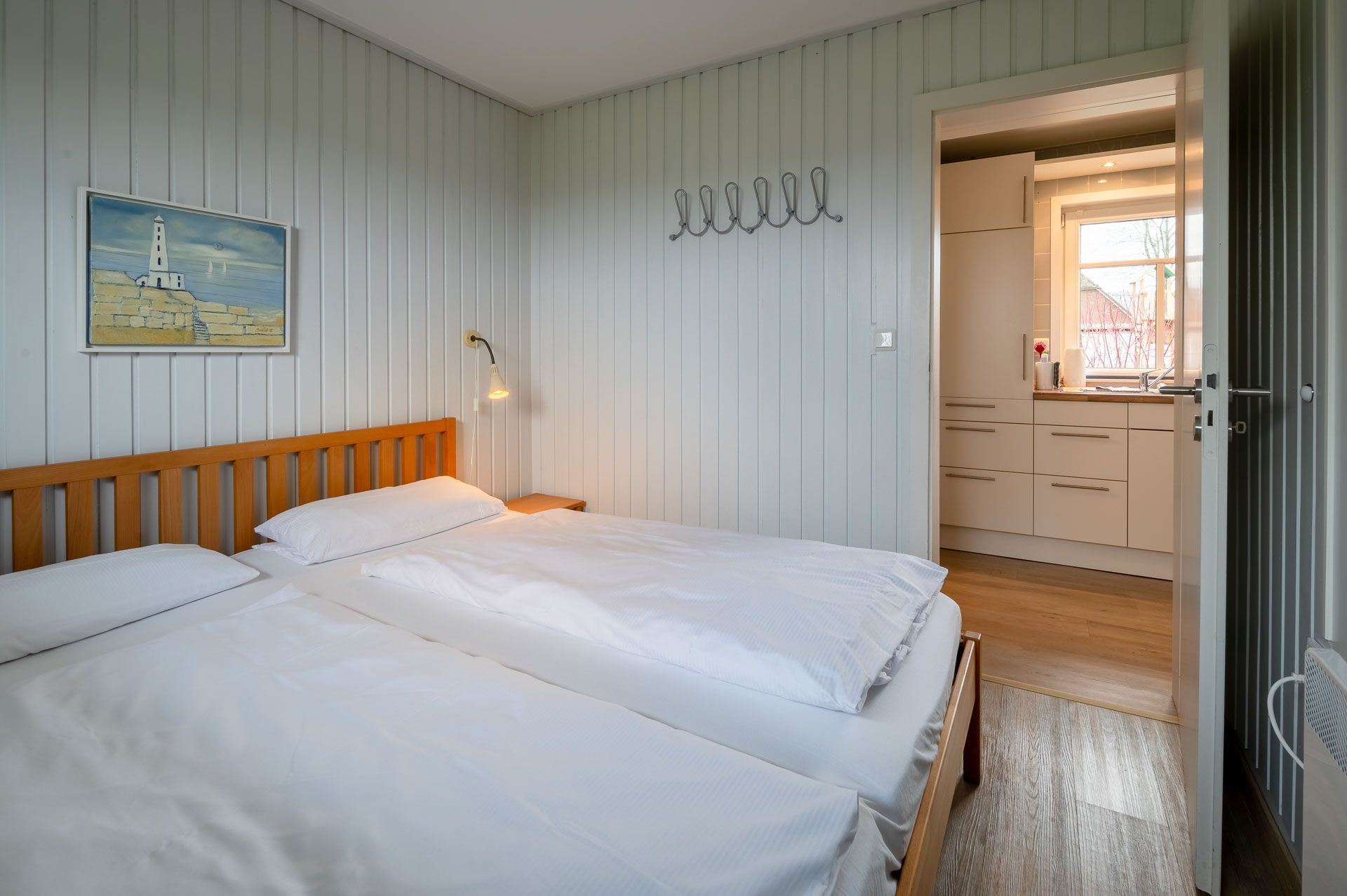 Das Schlafzimmer verfügt über ein Doppelbett (180x200cm) und ein weiteres Schlafzimmer mit ausziehbarem Doppelbett (160x200cm) sorgen für angenehmen Schlafkomfort für bis 4 Personen. Ein schönes Duschbad mit ebenerdiger Dusche, Fön, hängendem WC und beheiztem Handtuchwärmer bieten modernes Urlaubswohngefühl. Ein eigener PKW-Stellplatz, der mit dem Namen des Hauses gekenzzeichnet ist und Waschmaschine/Trockner im Gemeinschaftsserviceraum stehen ebenfalls zur Verfügung. Fahrräder können geschützt abgestellt werden. EIne Erstausstattung an Bettwäsche und Handtüchern kann optional für 20€ pro Person hinzugebucht werden.