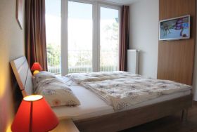 Sie wohnen in einem 2-Zimmer-Appartement für bis zu 4 Personen auf ca. 48 m² Wohnfläche im 1. Obergeschoss. Ein Schlafzimmer mit Doppelbett, Flachbild-TV und Safe, großer heller Wohn-/Schlafraum mit bequemer Doppelbettcouch, separater Essplatz, separate und voll ausgestattete Küche mit Geschirrspüler und Mikrowelle, Dusche/WC mit Bidet, großer möblierter Balkon, Abstellraum, SAT-Flachbild-TV und Mini-HiFi-Anlage. Nummerierter und überdachter Tiefgaragenstellplatz.