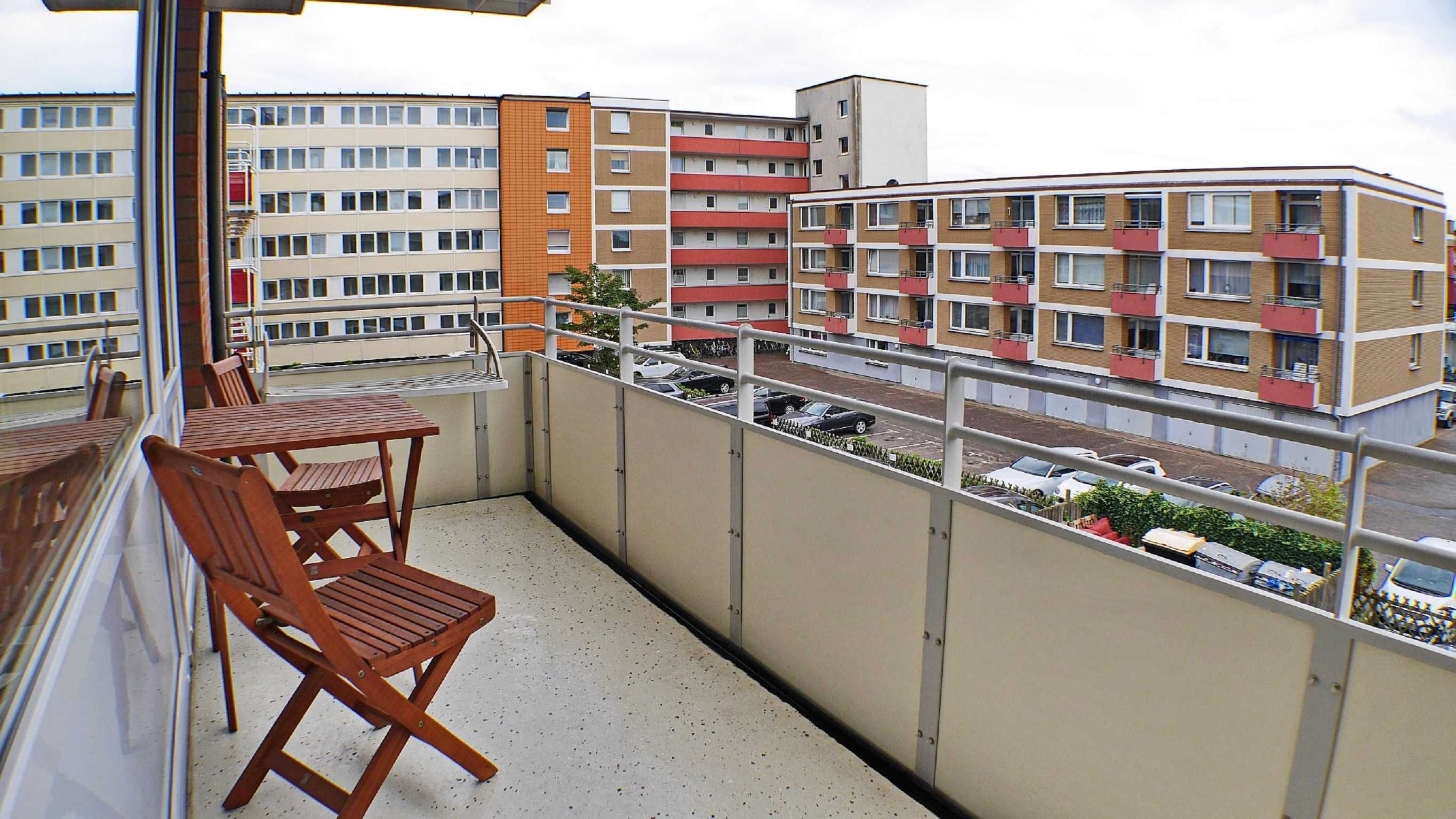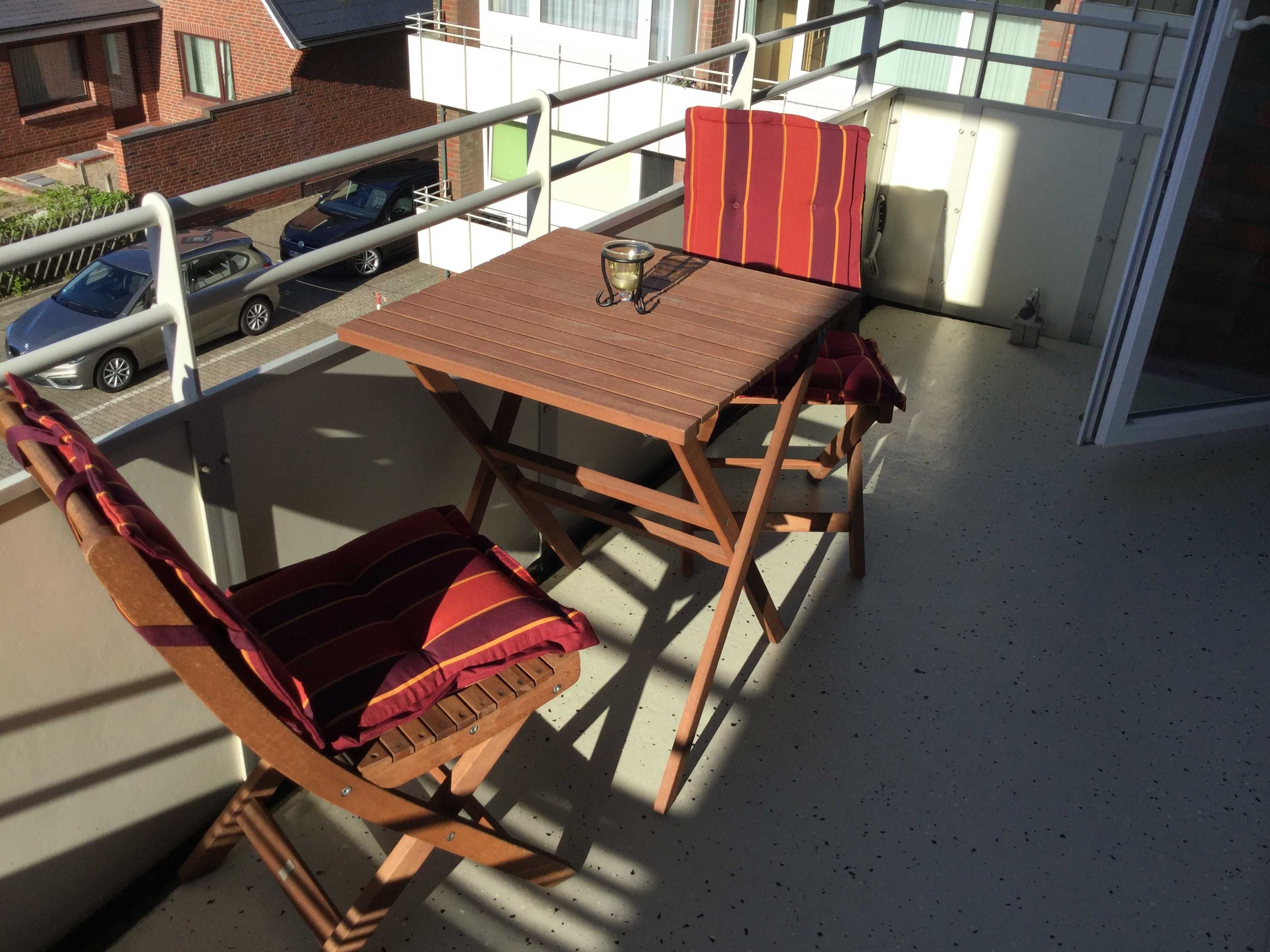 Zum Verweilen lädt der möblierte Balkon zum Hinterhof ein.