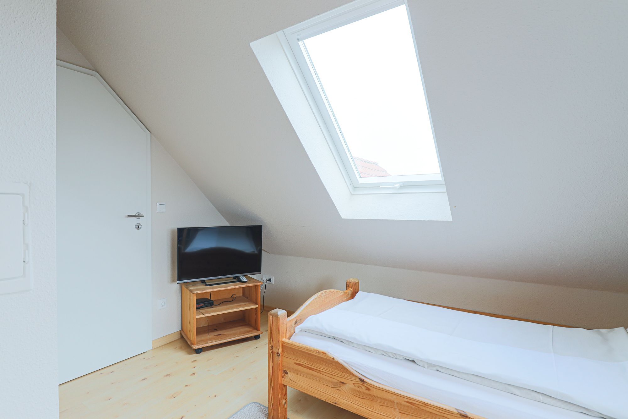 Im unteren Schlafbereich befinden sich zwei gemütlich eingerichtete Schlafzimmer eines davon mit großzügigem Doppelbett, das andere mit zwei Einzelbetten. Der Schlafkomfort wird durch moderne Ausstattung und liebevolle Einrichtung unterstrichen. Ergänzt wird das Raumangebot durch ein modernes Duschbad mit WC sowie einer eigenen Waschmaschine besonders praktisch für längere Aufenthalte.