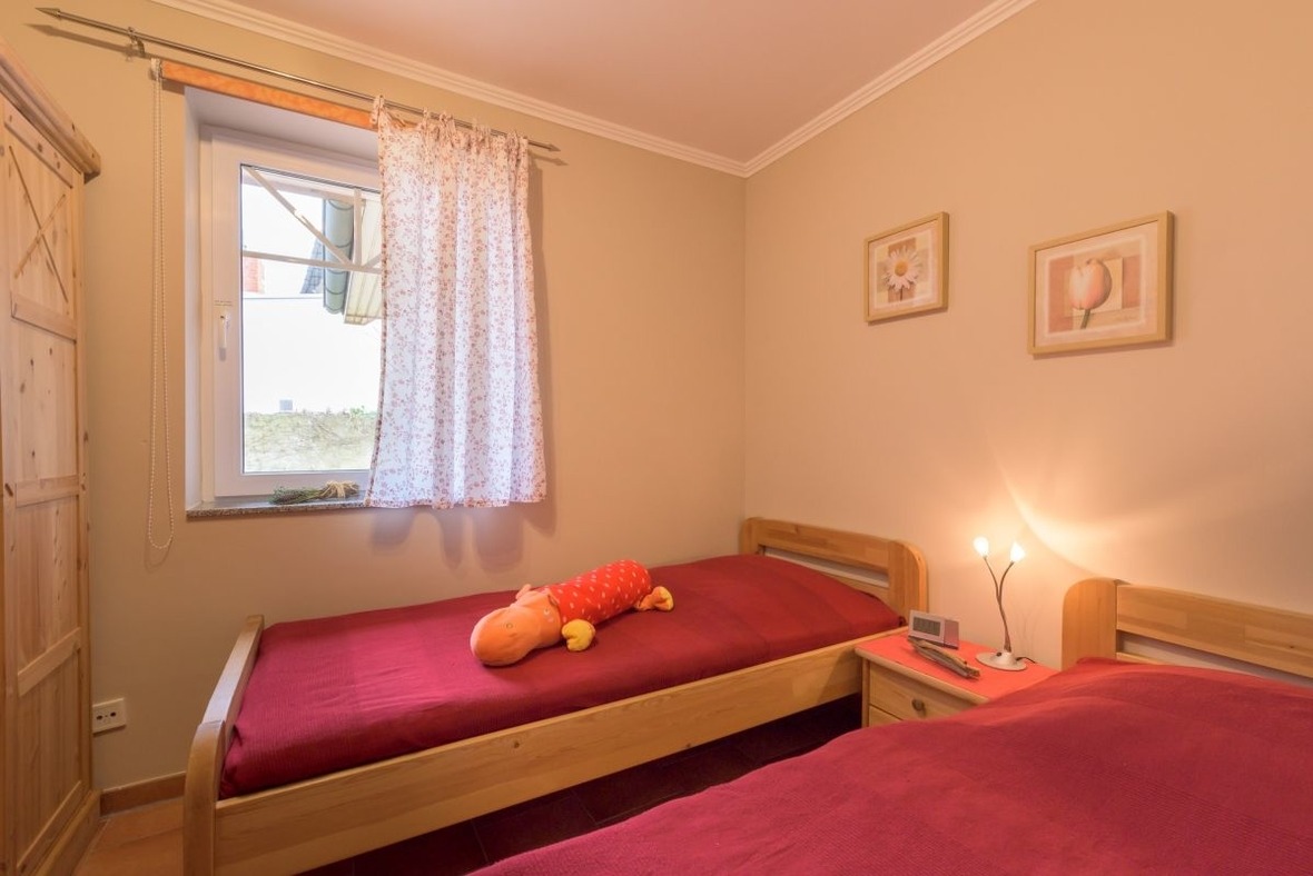 In diesem 4 Sterne Ferienhaus können bis zu 6 Personen ( Kinder ab 3 Jahren gelten als Person) und ein Kleinkind im Reisebett auf ca. 105 qm über zwei Etagen mit drei Schlafzimmern und zwei Bädern (EG barrierefrei) komfortabel wohnen. Wohnzimmer, ein Schlafzimmer und ein Bad mit ebenerdiger Dusche befinden sich im Erdgeschoss. Ein Rollator steht auch bereit.