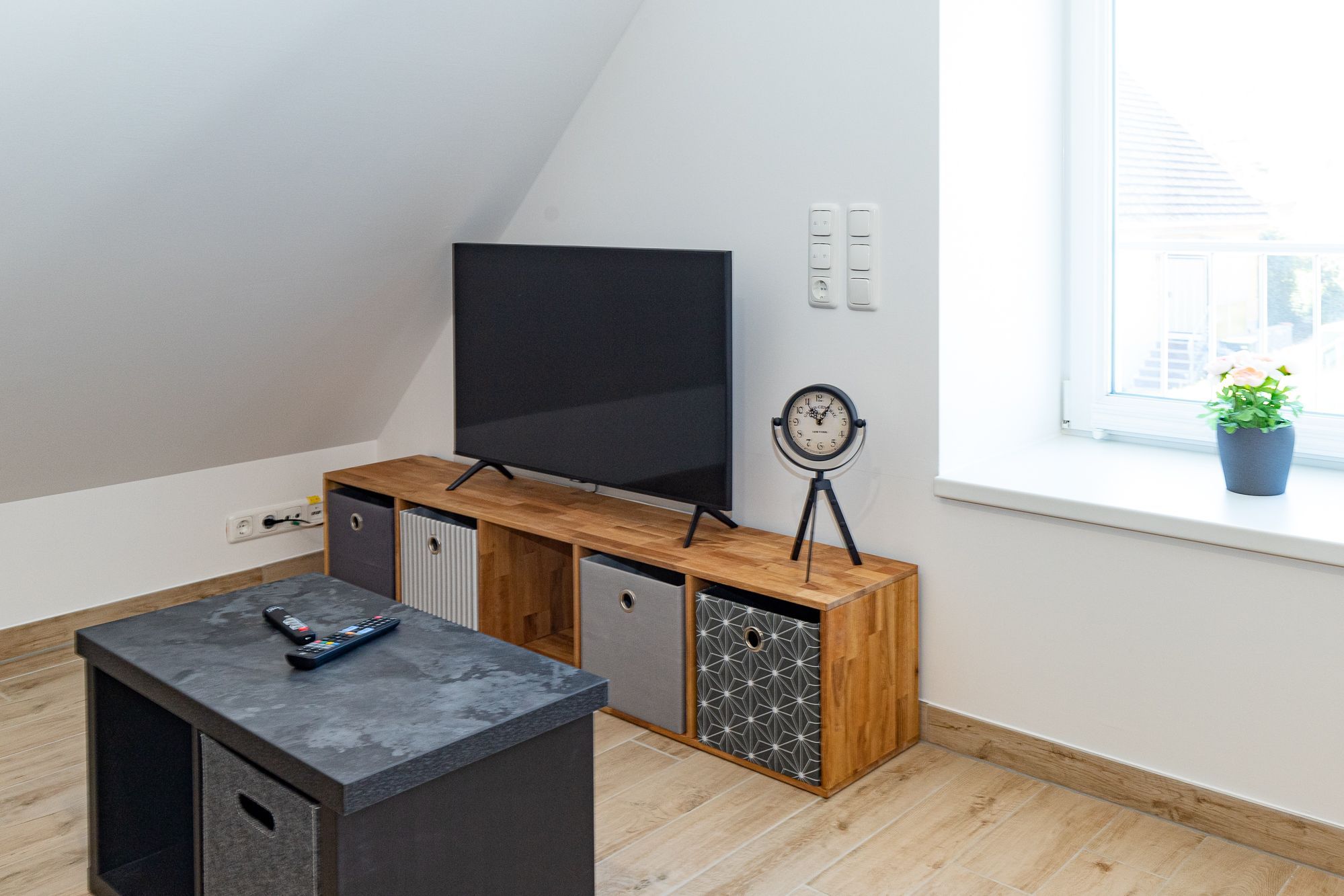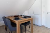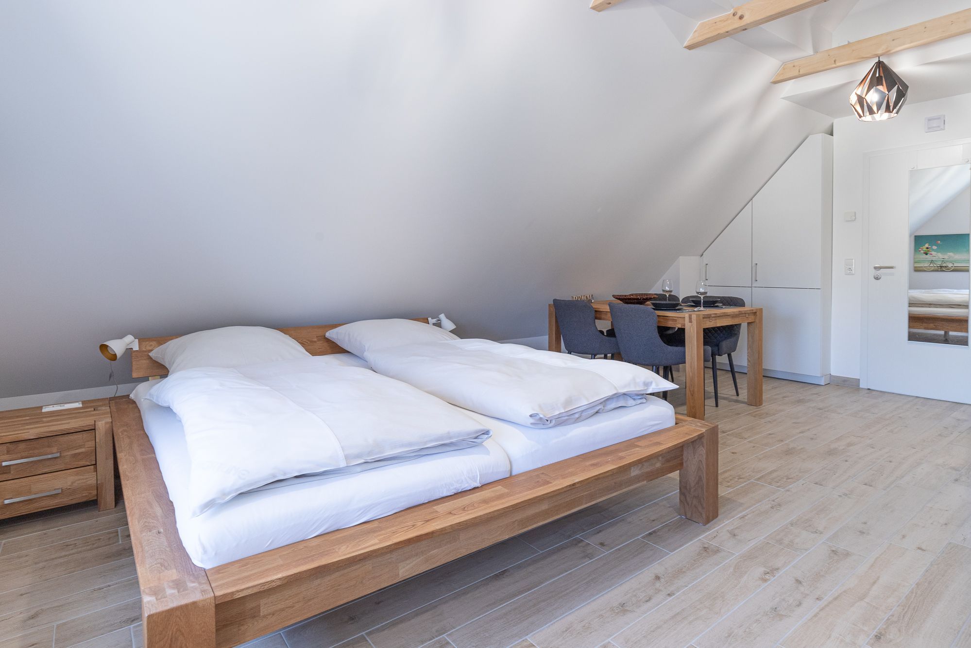 Sahlenburger Weg 17 - Es erwartet Sie eine helle, sehr gemütliche 1-Raum Ferienwohnung mit offenen Dachbalken und stimmungsvoller Deckenbeleuchtung. Ein wunderbares Doppelbett ist in dem gemütlichen Appartement bestens integriert und die Fußbodenheizung sorgt für behagliche Wärme. Alle Fenster verfügen über Plissees, Rollläden und Fliegengitter. Die Küche ist voll ausgestattet, das Bad verfügt über eine ebenerdige Dusche. Fahrräder können je nach Platz im Fahrradraum, wo sich auch eine Waschmaschine für Sie befindet oder hinter dem Haus abgestellt werden. Auch befindet sich am Haus in Süd/Ost Lage eine schöne Terrasse mit Sitzmöbeln, zur Entspannung z.B. nach einem schönen Strandtag für Sie.
