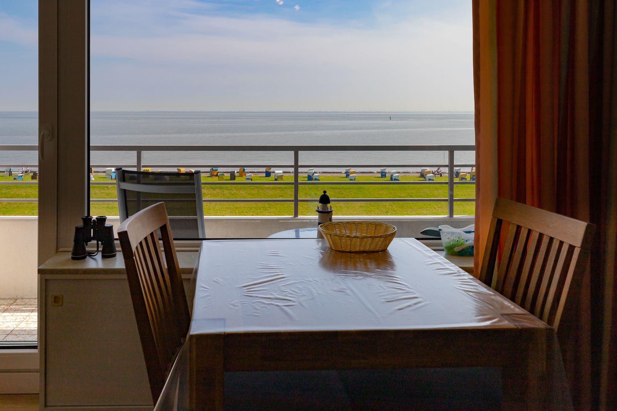 Einfach ein traumhafter Blick auf die Bucht und die Nordsee. Hier ist der Name des Hauses Programm: Nordseeblick. Diese gemütliche Wohnung im 4 .OG des beliebten Hauses Nordseeblick, direkt mit Blick auf die Grimmershörner Bucht. Direkte Nähe zum Grünstrand, wenige Gehminuten zum Sandstrand und dazwischen die Kugelbake. Eine Ferienwohnung in einer Traumgegend mit einer Traumsicht. in Fahrstuhl, ein reservierter PKW-Stellplatz und ein abschließbarer, zur Wohnung dazugehöriger Fahrradabstellraum sind hier selbstverständlich. Ein optimales Ferienquartier für 2 Personen.