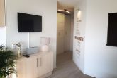 Die Ferienwohnung Austernfischer befindet sich im 6. Stock mit Blick auf die Ostsee, den Leuchtturm und die Salzwiesen mit Galloway-Rinder. Von hier könnt Ihre Kraniche, Wildgänse und viele andere wildlebende Tiere beobachten. Das Schlafzimmer mit Doppelbett (180x200) und TV lädt zum Träumen ein und lässt Euch neue Energie tanken.