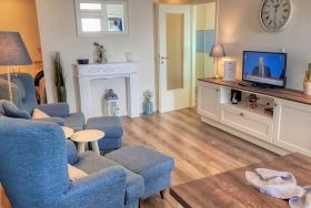 Eine Sonnenmarkise schützt Euch bis zum frühen Nachmittag vor der Sonne. Der helle großzügige Wohn-Essbereich mit der voll ausgestatteten Küche ist offen gestaltet und bietet viel persönlichen Raum.