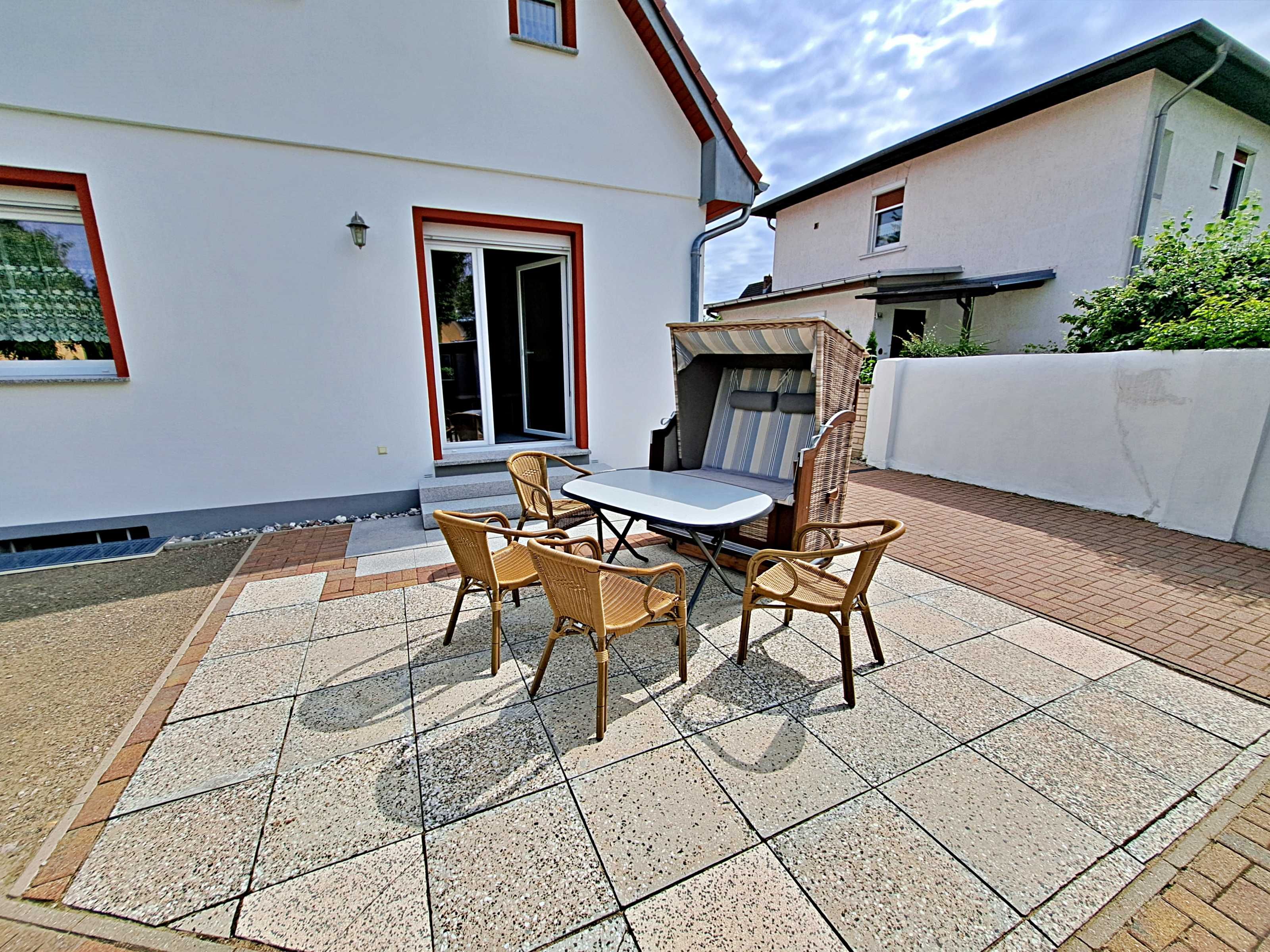 Ruhig, hell und freundlich - mit einer großzügigen Wohnfläche von 116 m² und einem idyllischen, 700 m² großen Grundstück, das von einer Hecke umgeben ist, bietet das Ferienhaus die perfekten Voraussetzungen für einen erholsamen Urlaub. Im Erdgeschoss erwartet Sie ein helles Wohnzimmer, das mit einer bequemen Couch und einem Flachbild-TV ausgestattet ist. Von hier aus gelangen Sie auf die möblierte Terrasse, die nach Südwesten ausgerichtet ist sowie in den liebevoll angelegten Garten. Genießen Sie hier Ihr Frühstück oder lassen Sie den Abend bei einem Glas Wein ausklingen. Die separate Küche ist mit einem Esstisch, Ceranherd, Backofen, Spülmaschine, Mikrowelle, Kaffeemaschine und Wasserkocher ausgestattet - alles, was Sie für die Zubereitung Ihrer Mahlzeiten benötigen. Im Erdgeschoss finden Sie zudem ein Schlafzimmer mit einem Doppelbett und einer Couch (Aufbettungsmöglichkeit) sowie ein geräumiges Tageslicht-Bad mit Dusche/WC und ein zusätzliches Gäste-WC. Im Obergeschoss erwarten Sie zwei weitere Schlafzimmer: eines mit einem Doppelbett und das andere mit einem praktischen Tandembett. Hier befindet sich auch ein zweites Tageslicht-Bad mit Dusche/WC.