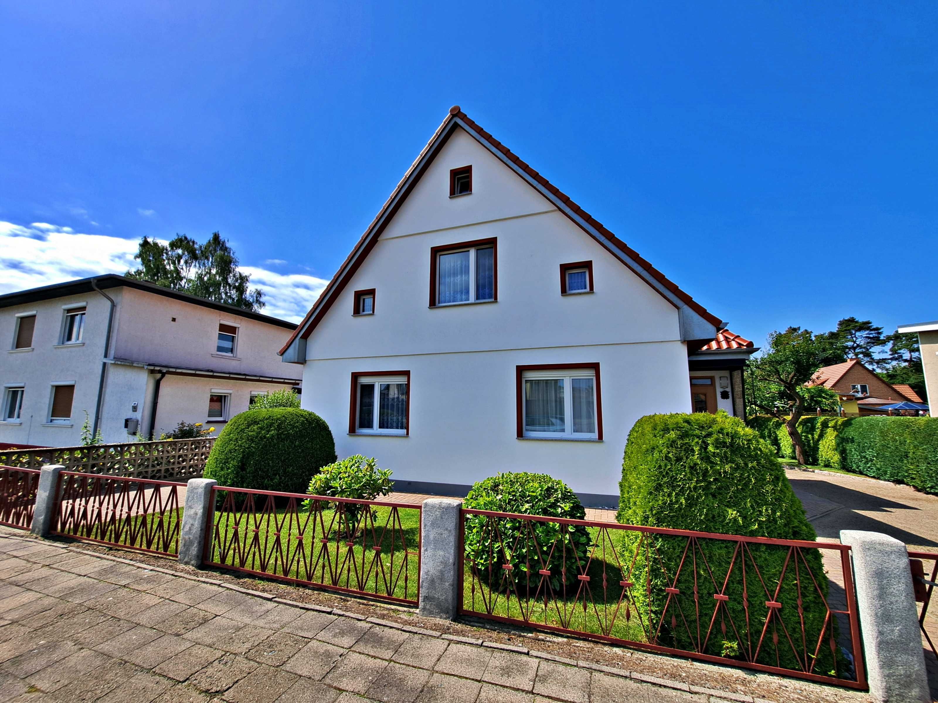 Das helle und freundlche Ferienhaus von 1936 liegt in der charmanten Siedlung Ostend, nur etwa 400 m vom feinen Sandstrand und dem schönen Wald, im Seebad Ahlbeck entfernt. Das Haus wurde 2016 umfassend instandgesetzt und modernisiert, um Ihnen einen komfortablen Aufenthalt zu bieten. Die Umgebung hält zahlreiche Einkaufsmöglichkeiten, Geschäfte, Restaurants und Cafés bereit, die Sie bequem zu Fuß erreichen können. So ist unser Ferienhaus der ideale Ausgangspunkt für einen erholsamen und entspannten Urlaub auf der Sonneninsel.