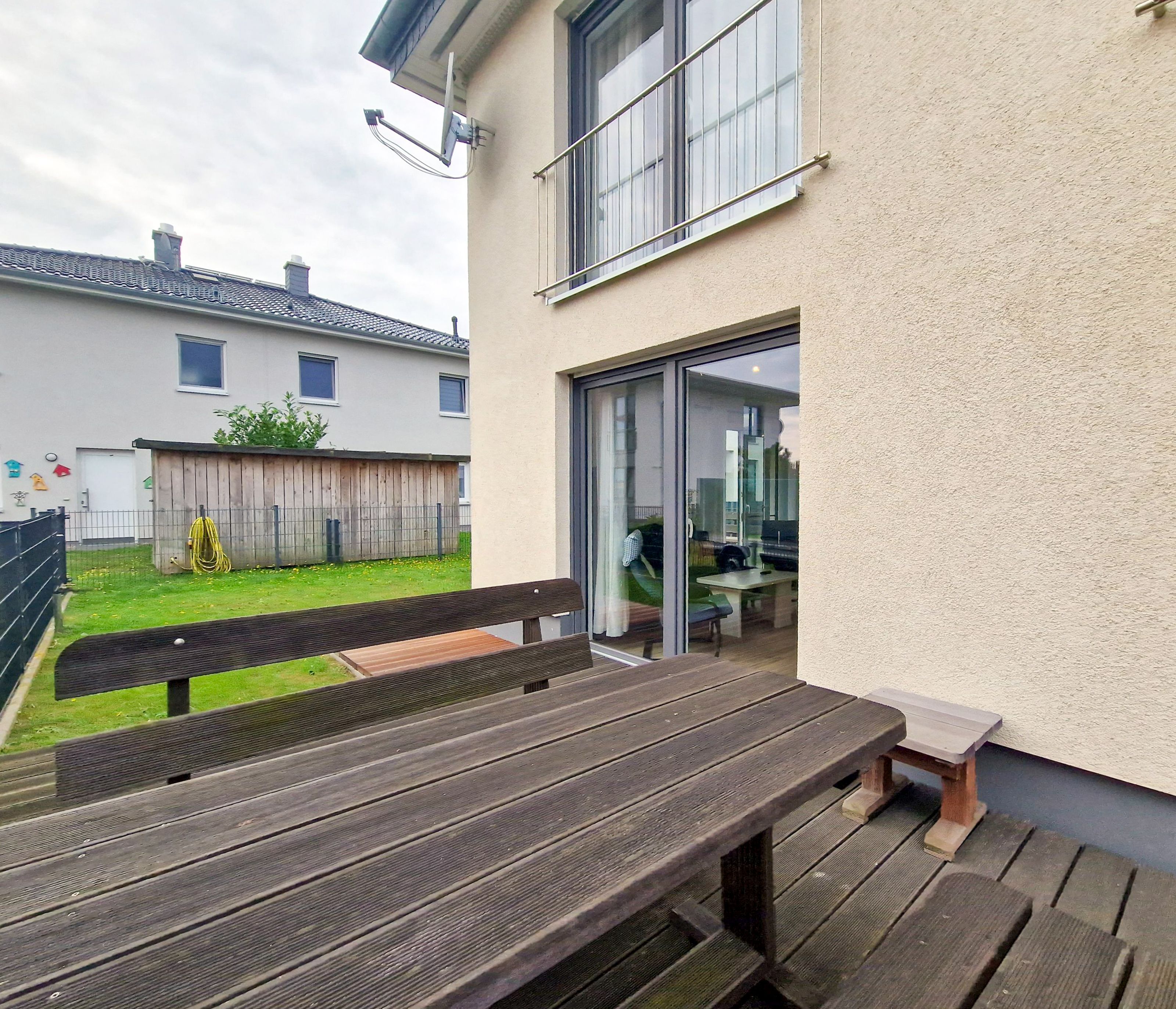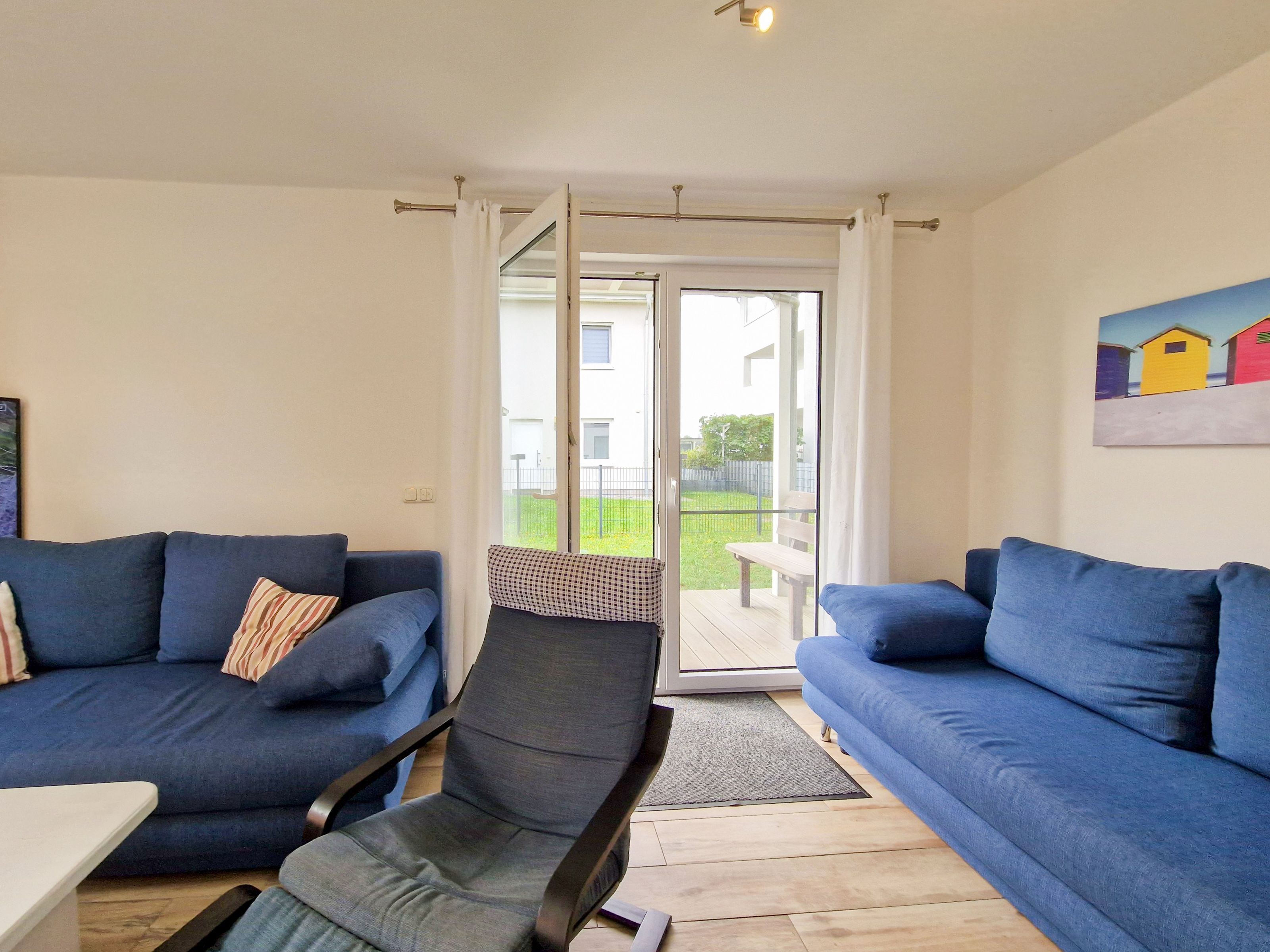 Zur Wohnung gehören weiterhin eine Haupt- und eine kleinere Terrasse mit angrenzendem Rasenbereich. Die größere Terrasse ist der ideale Schauplatz für ein sommerliches Barbecue mit allerlei Leckerem vom Rost. Bitte nehmen Sie dabei Rücksicht auf Ihre Nachbarn und ggf. weitere Feriengäste. Ein Grill ist nicht vorhanden!
