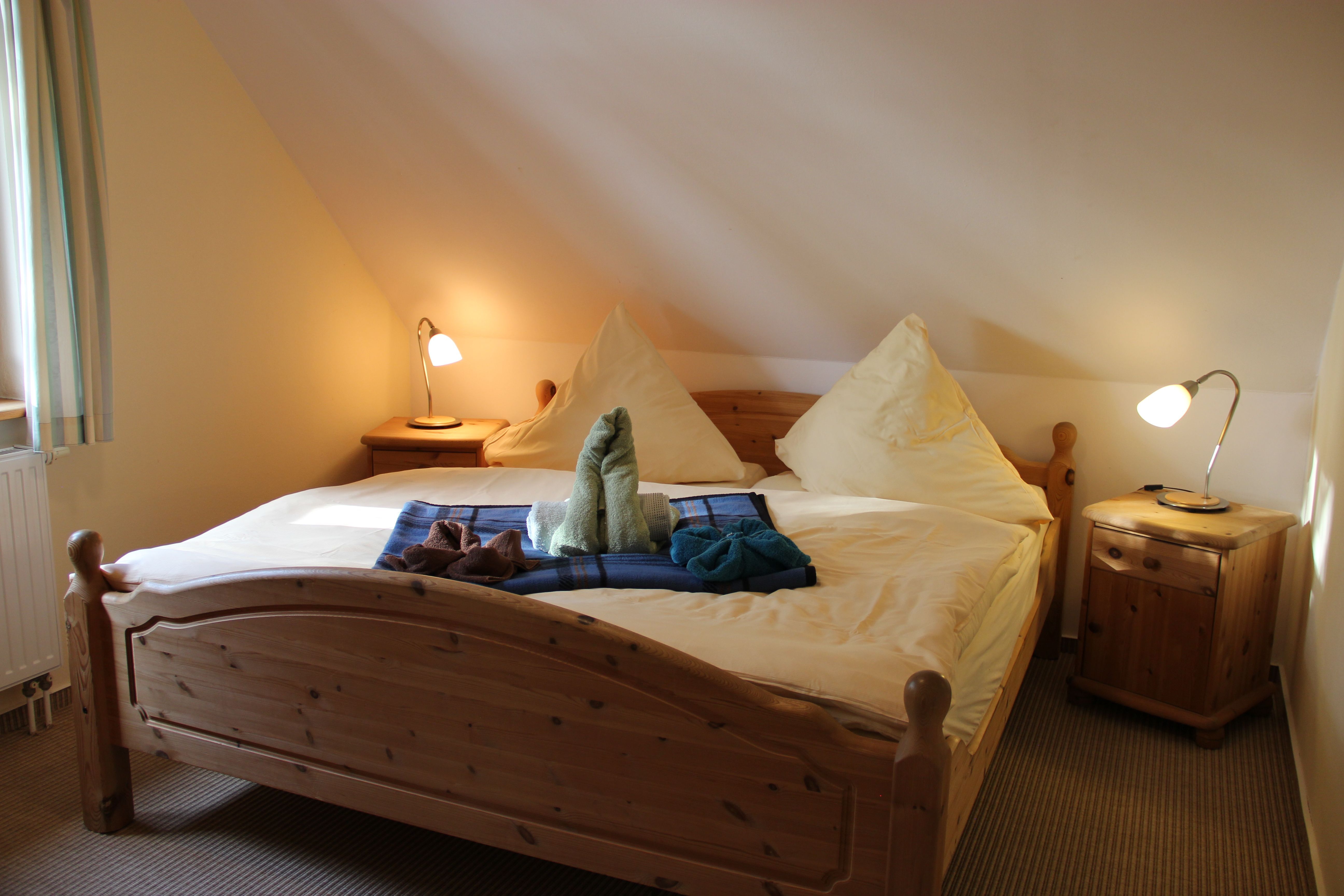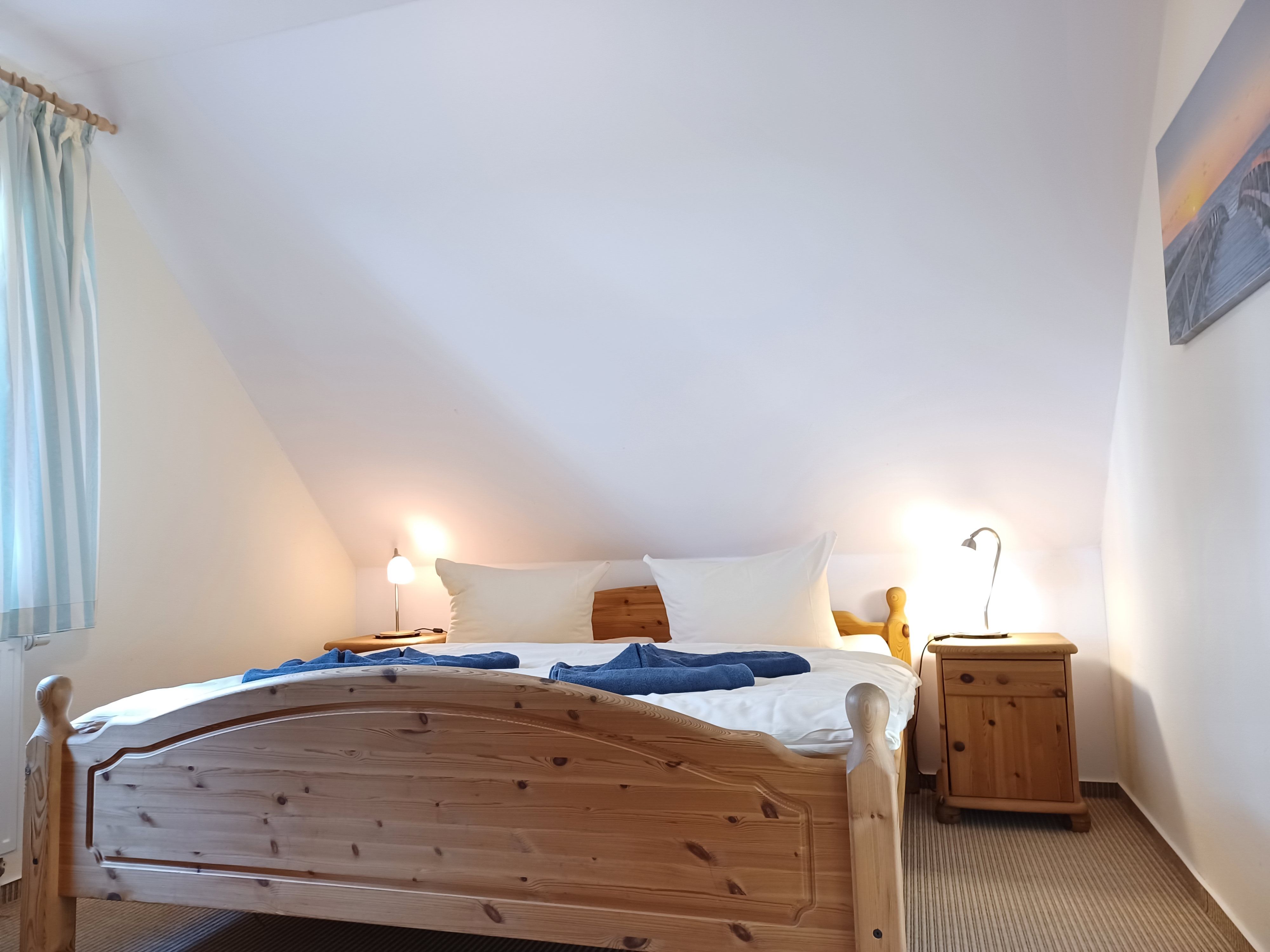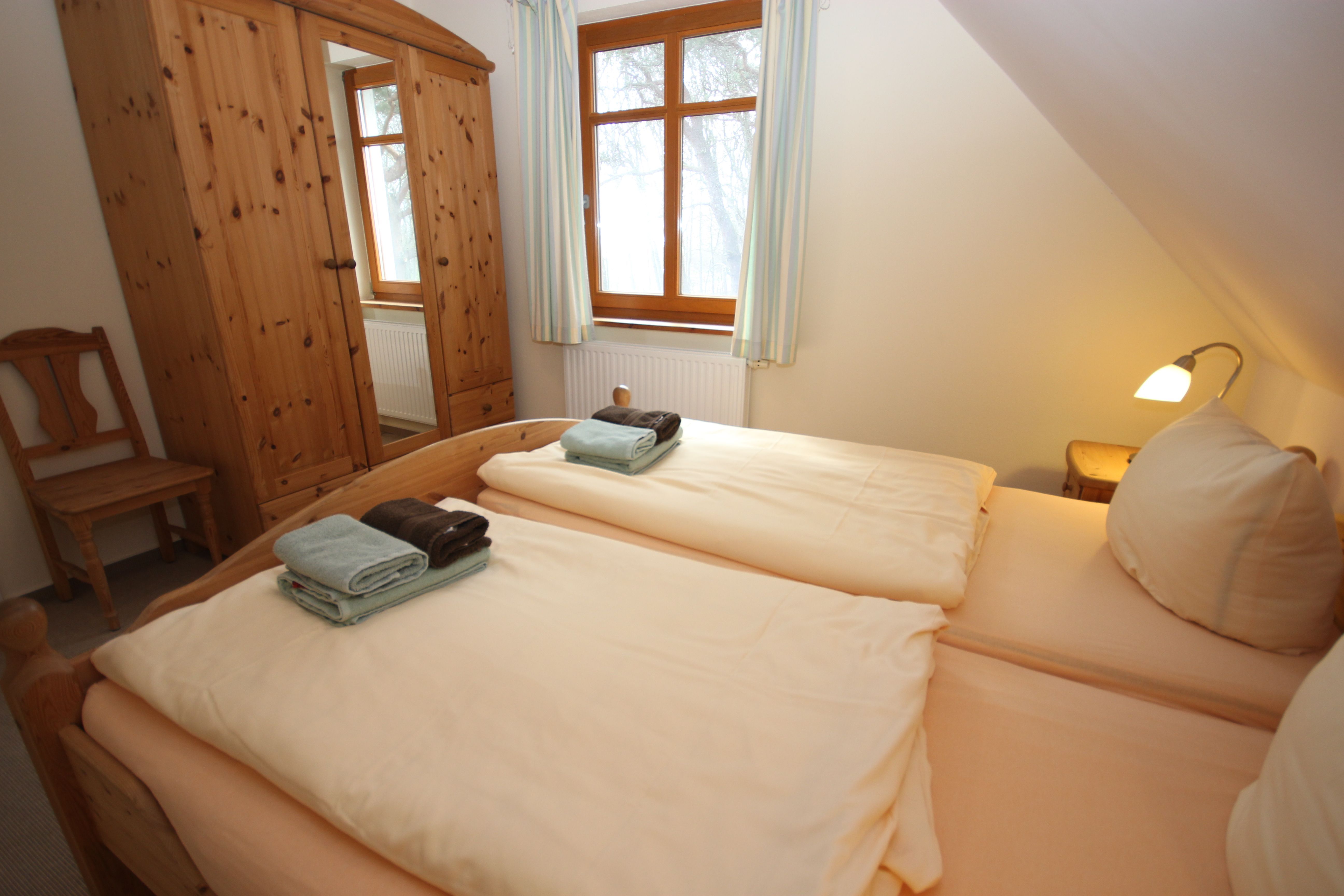 Die Ferienwohnung 3 befindet sich im Obergeschoss und verfügt über 2 Schlafzimmer mit Doppelbetten (jeweils 1,80 x 2,00 m mit getrennten Matratzen). Die Bettwäsche und Handtücher sind für Sie inklusive.