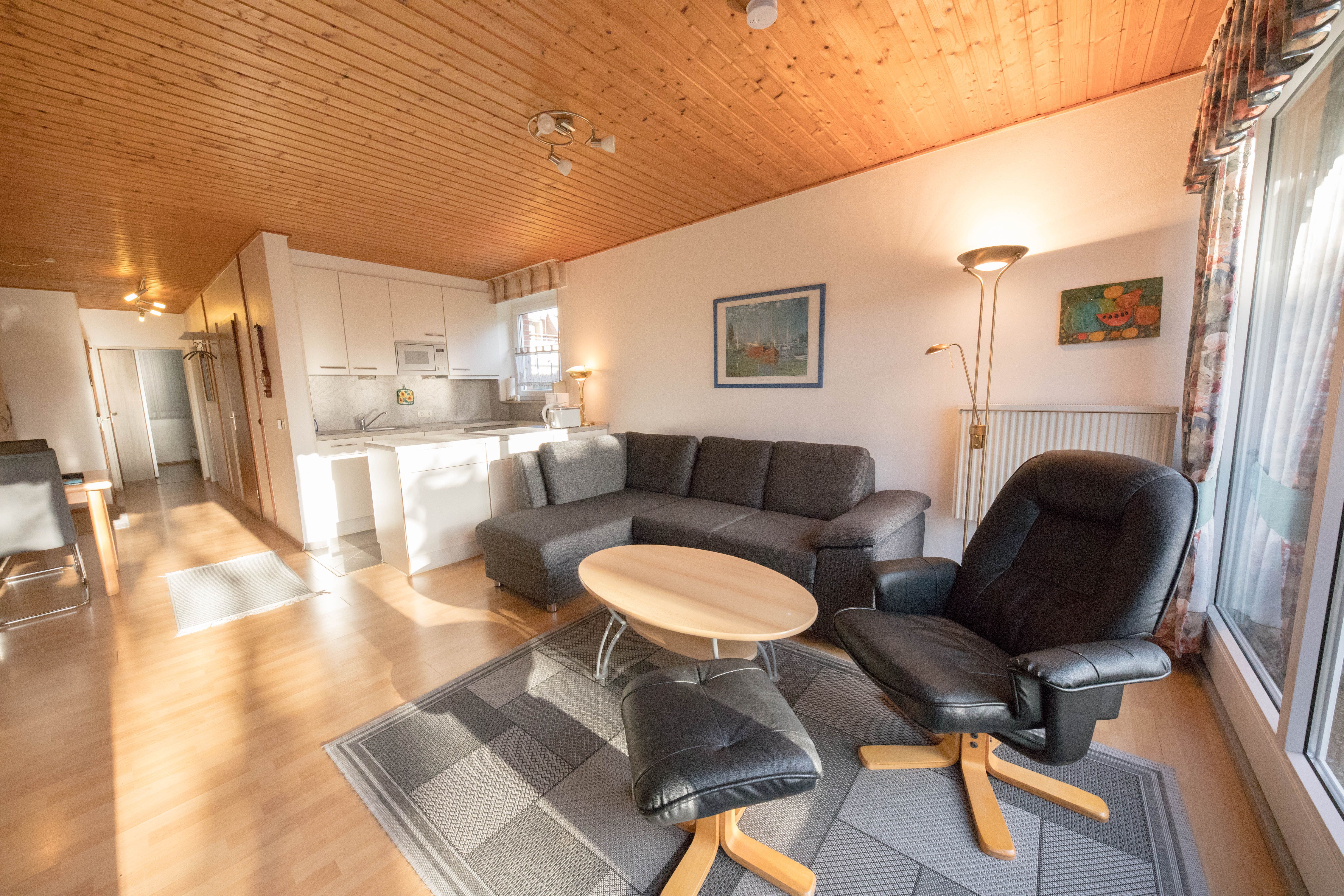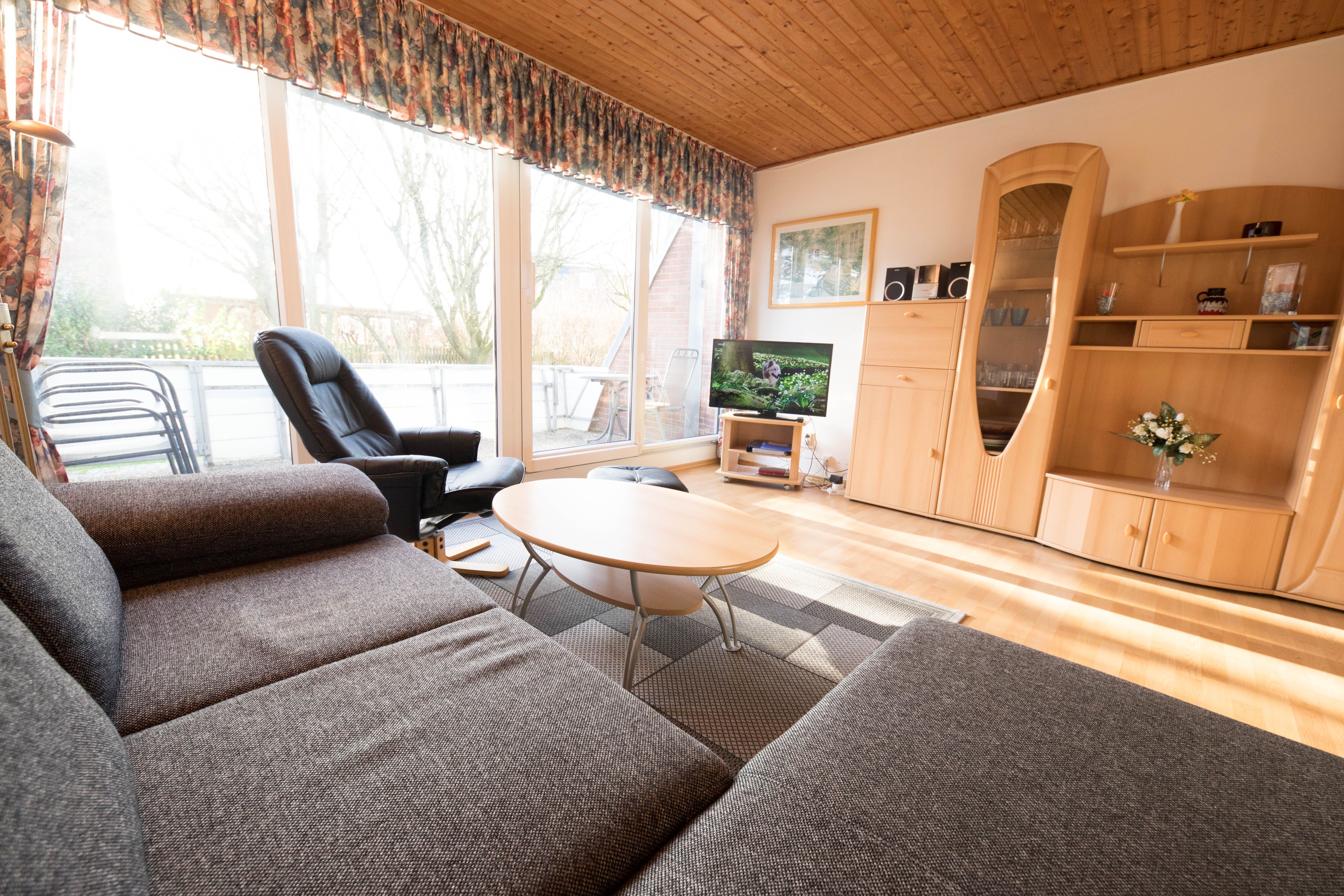 Die großzügig geschnittene, ebenerdige Ferienwohnung Silbermöwe verfügt über 55 m² Wohnfläche und befindet sich nur wenige Gehminuten vom Strand entfernt, in Friesenhörn - einem Ortsteil von Horumersiel. Sie bietet drei Personen und einem Kleinkind ausreichend Platz für einen erholsamen Urlaub. Die Ferienwohnung verfügt über ein Schlafzimmer mit Doppelbett und Fernseher. Ein Kinderreisebett und -stuhl ist vorhanden. Das zweite Schlafzimmer ist mit einem Einzelbett ausgestattet, verfügt über ein Schreibtisch, Kleiderschrank und Musikanlage. Das helle Wohnzimmer mit Eckgarnitur und Ausziehsofa, großem Flachbildfernseher und Musikanlage hat einen direkten Zugang auf die Süd-Terrasse und dem hinteren Rasengrundstück. Die offene Küche ist sehr gut ausgestattet und verfügt über einen Geschirrspüler, Kühlschrank mit Gefrierfach, Backofen mit vier Kochfeldern, Kaffeemaschine, Wasserkocher und Toaste sowie einer Mikrowelle. Das Badezimmer mit Fenster ist mit Dusche und WC ausgestattet. Alle Räume können durch Außenrollos komplett abgedunkelt werden. Der Fußboden ist im Wohnzimmer und den Schlafzimmern mit Laminat ausgelegt, des weiteren verfügt die Wohnung über Satelliten-TV und W-LAN. Für Ihre Wertsachen steht Ihnen ein Möbeltresor zur Verfügung. Ein eigener Parkplatz ist direkt am Haus vorhanden, Fahrräder können bequem an der Hauswand geparkt und abgeschlossen werden. Der Strand ist nur wenige Gehminuten entfernt, ebenso ist der Ort in wenigen Gehminuten über den Kurpark erreichbar. Alle Einrichtungen des täglichen Bedarf sind in Horumersiel vorhande