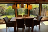 Das Erdgeschoss verfügt über einen großzügigen Wohnbereich mit Kaminofen und einem einladenden Essbereich mit Blick in den Garten. Neben dem Wohnbereich befindet sich ein kleines, neuwertiges Duschbad. Das Hauptbad mit Badewanne, Dusche und Waschbecken ist vom Flur zugänglich neben dem unteren Schlafzimmer. Eine weitere Toilette befindet sich mit Zugang vom unteren Schlafzimmer.