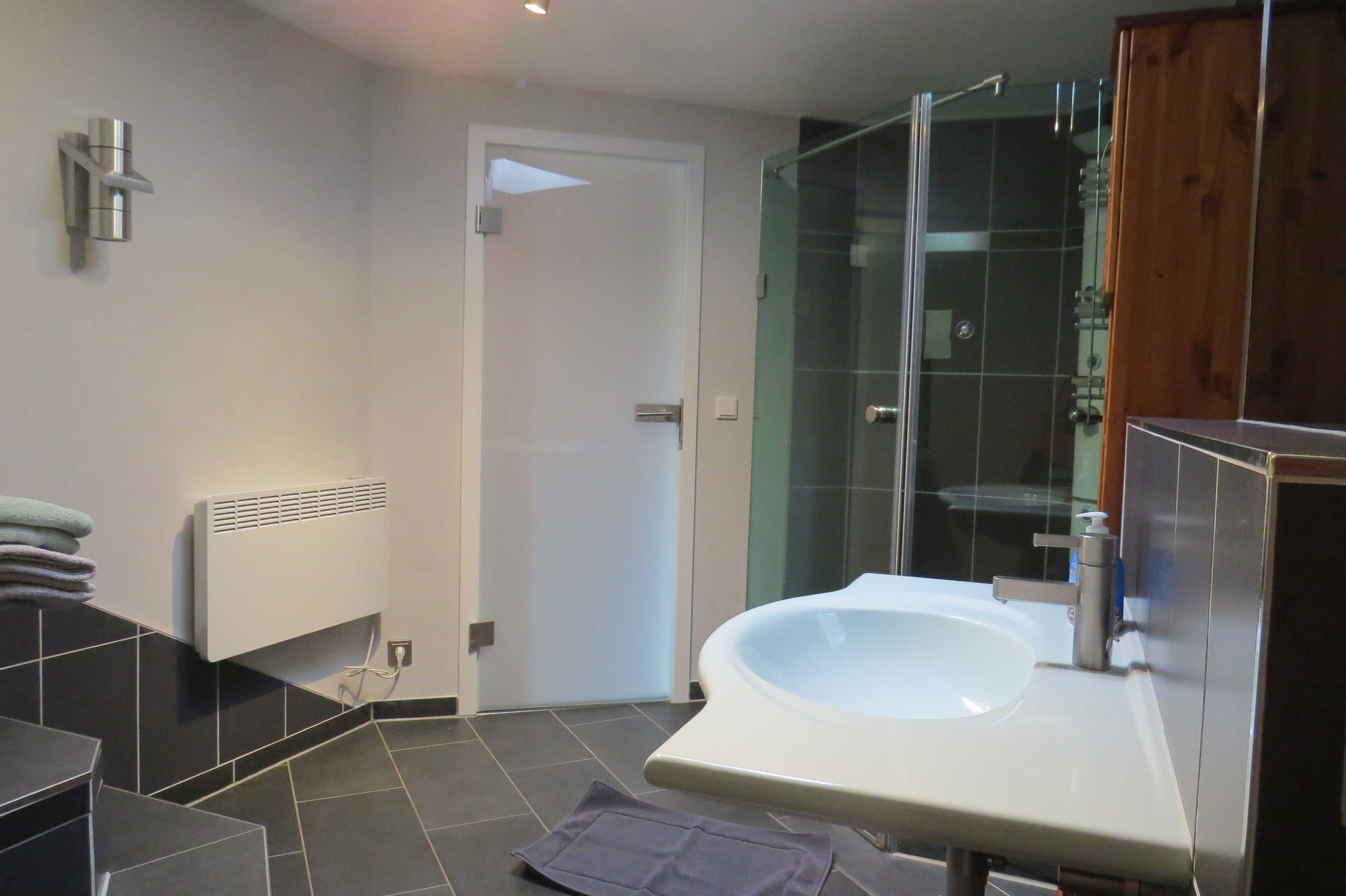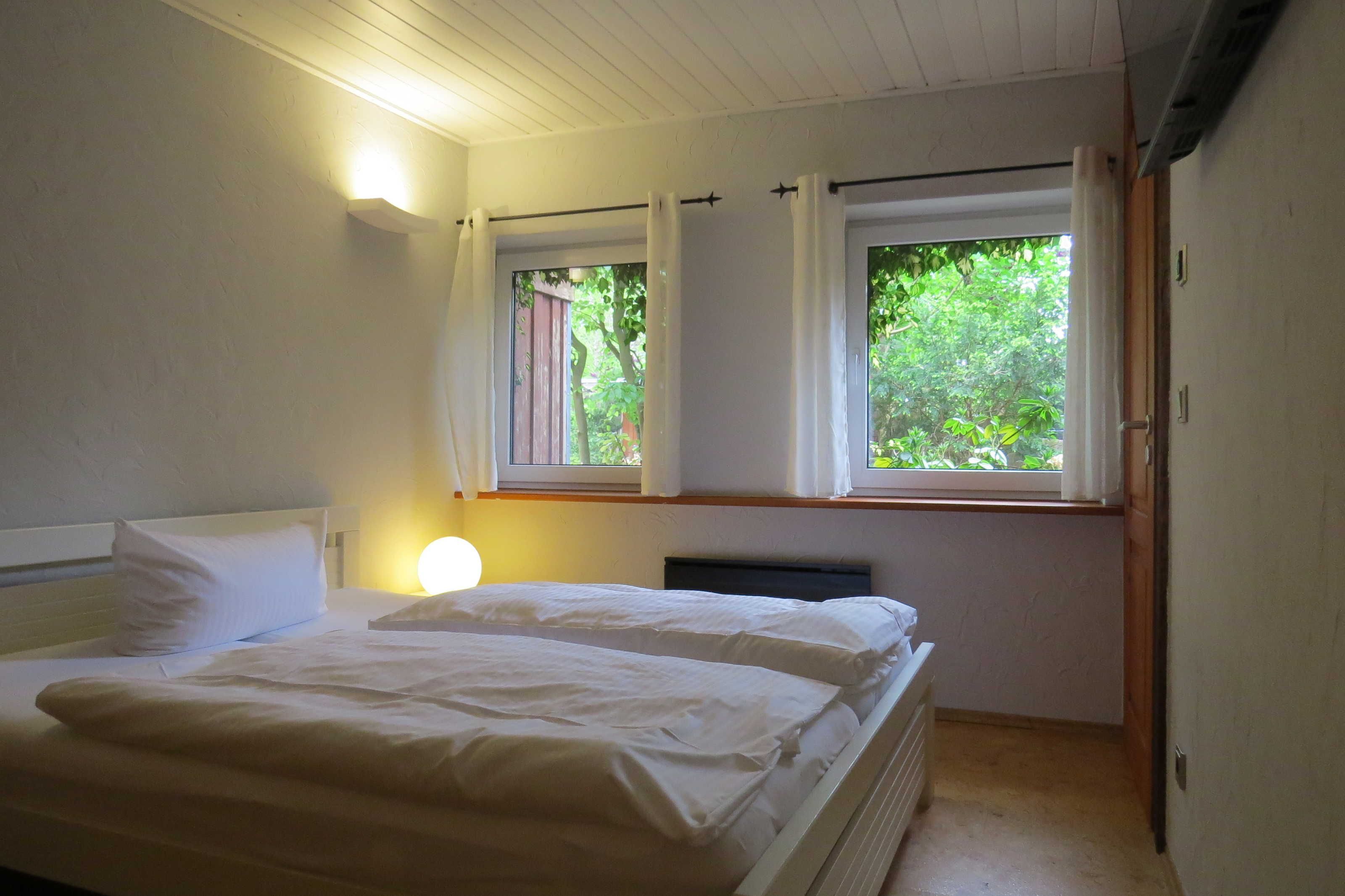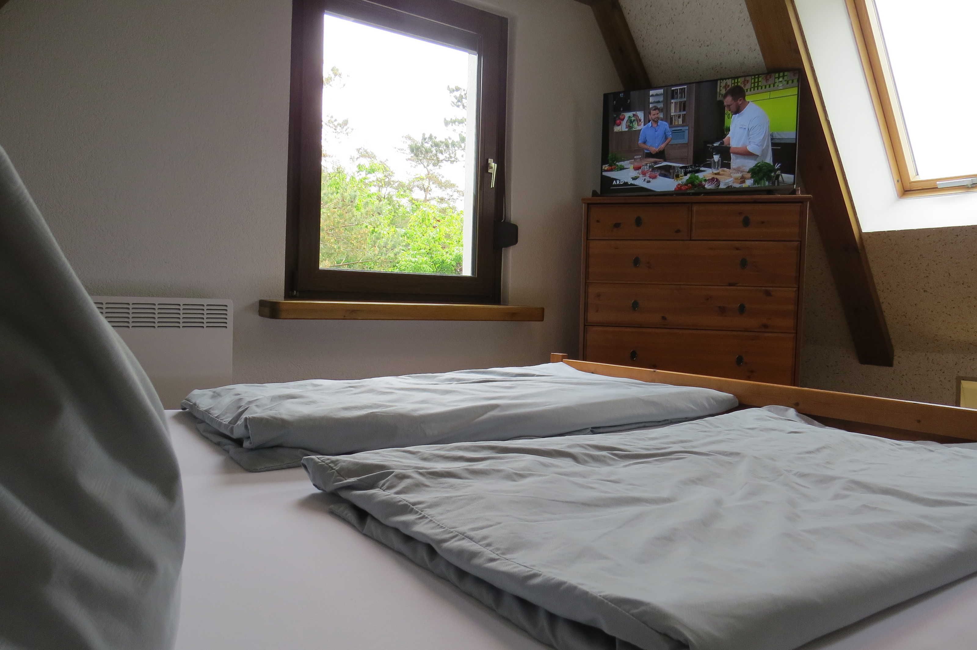 Eine Waschmaschine und Trockner befindet sich ebenfalls auf der unteren Etage. In der oberen Etage finden Sie ein großes Schlafzimmer mit Doppelbett und TV, sowie ein kleines Schlafzimmer mit zwei getrennten Betten in den Maßen 1,40m x 1,90m.