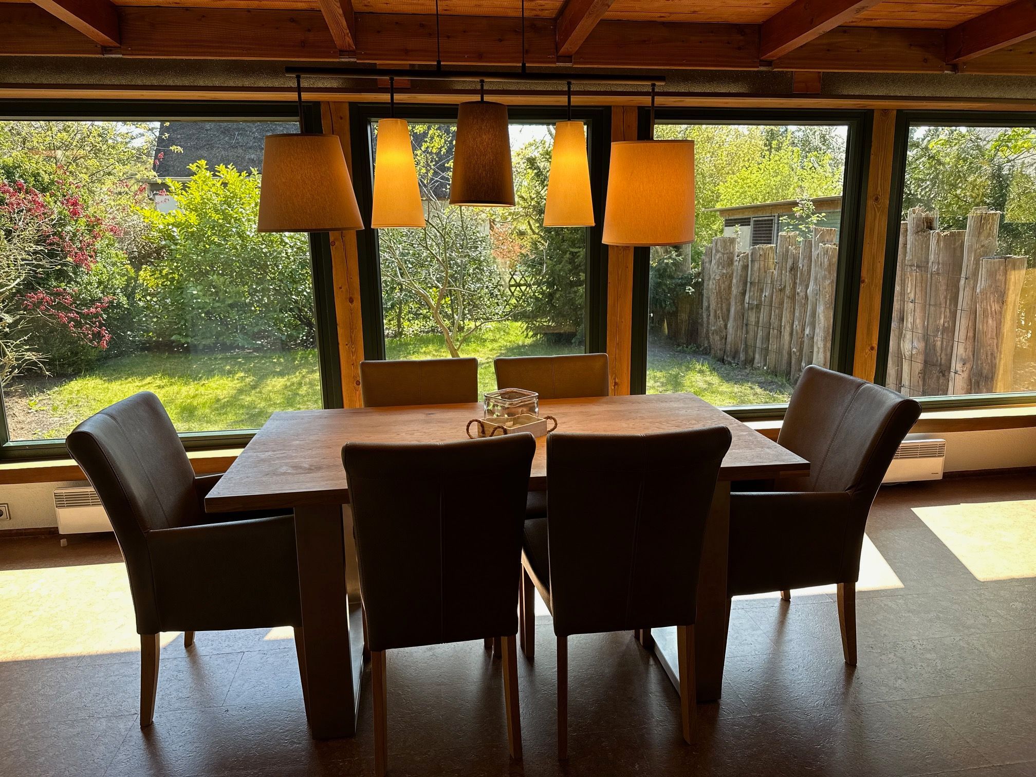 Das Haus mit etwa 130qm Wohnfläche steht auf einem 750qm großen Grundstück. Der kleine Garten ist zum Süden ausgerichtet und mit heimischen Anpflanzungen romantisch eingefriedet. Auch auf der großen Bambusholz-Terrasse genießt man viel Ruhe vom Alltagsgeschehen.