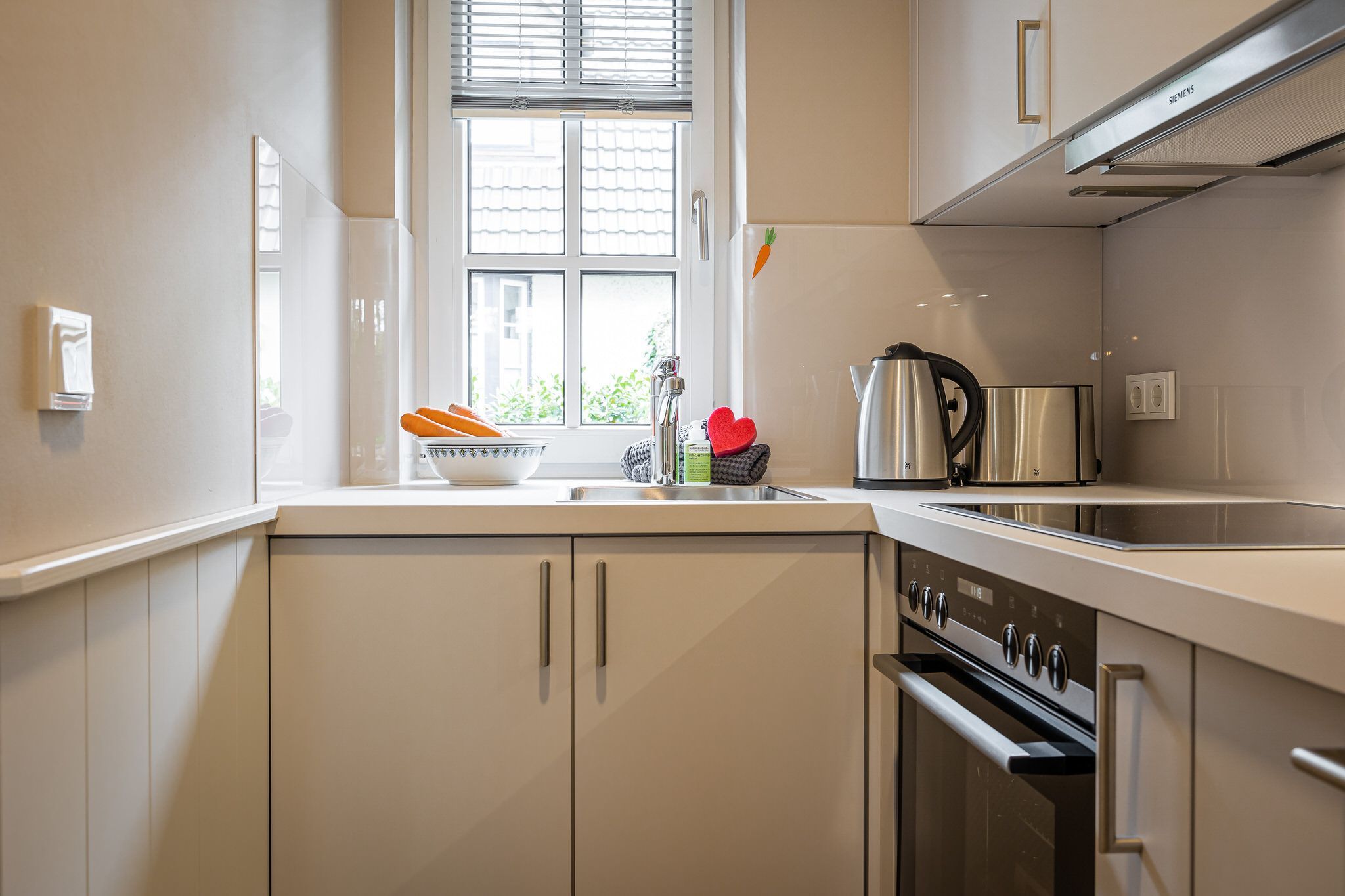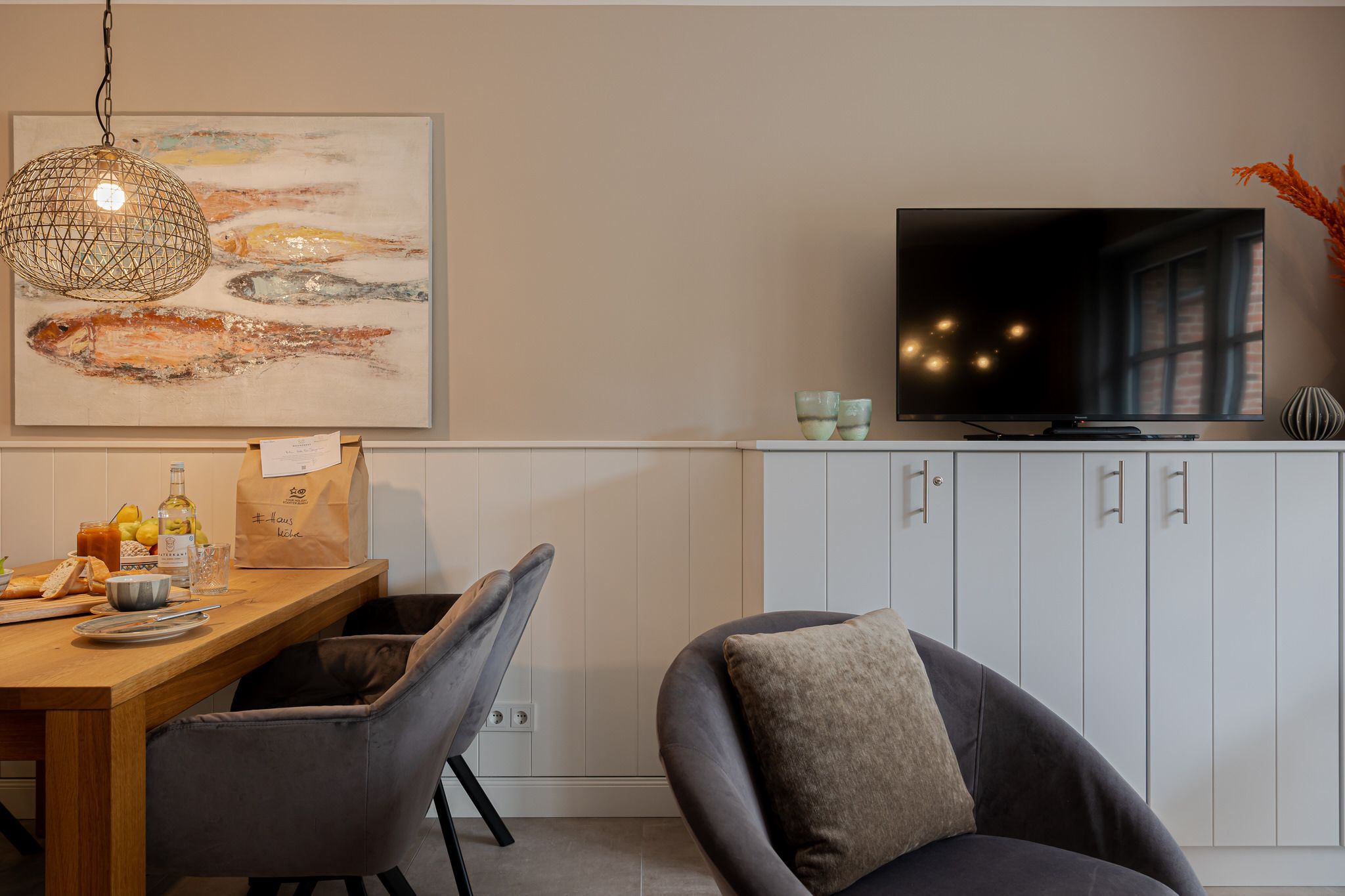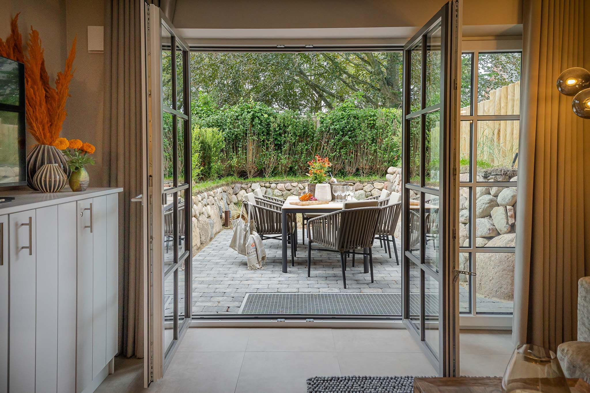 Auf drei geschmackvoll und liebevoll eingerichteten Etagen erleben Sie gemütlichen Sylter Flair. Der Wohnbereich ist durch die bodentiefen Fenster lichtdurchflutet, die warmen farblichen Akzente und der Holzfußboden mit Fußbodenheizung im ganzen Haus schaffen eine Atmosphäre zum Wohlfühlen. Entspannen Sie auf der gemütlichen Couchecke, spielen Sie gemeinsam Karten am Tisch oder kochen Sie in der hochwertigen Küche Ihr Lieblingsgericht.