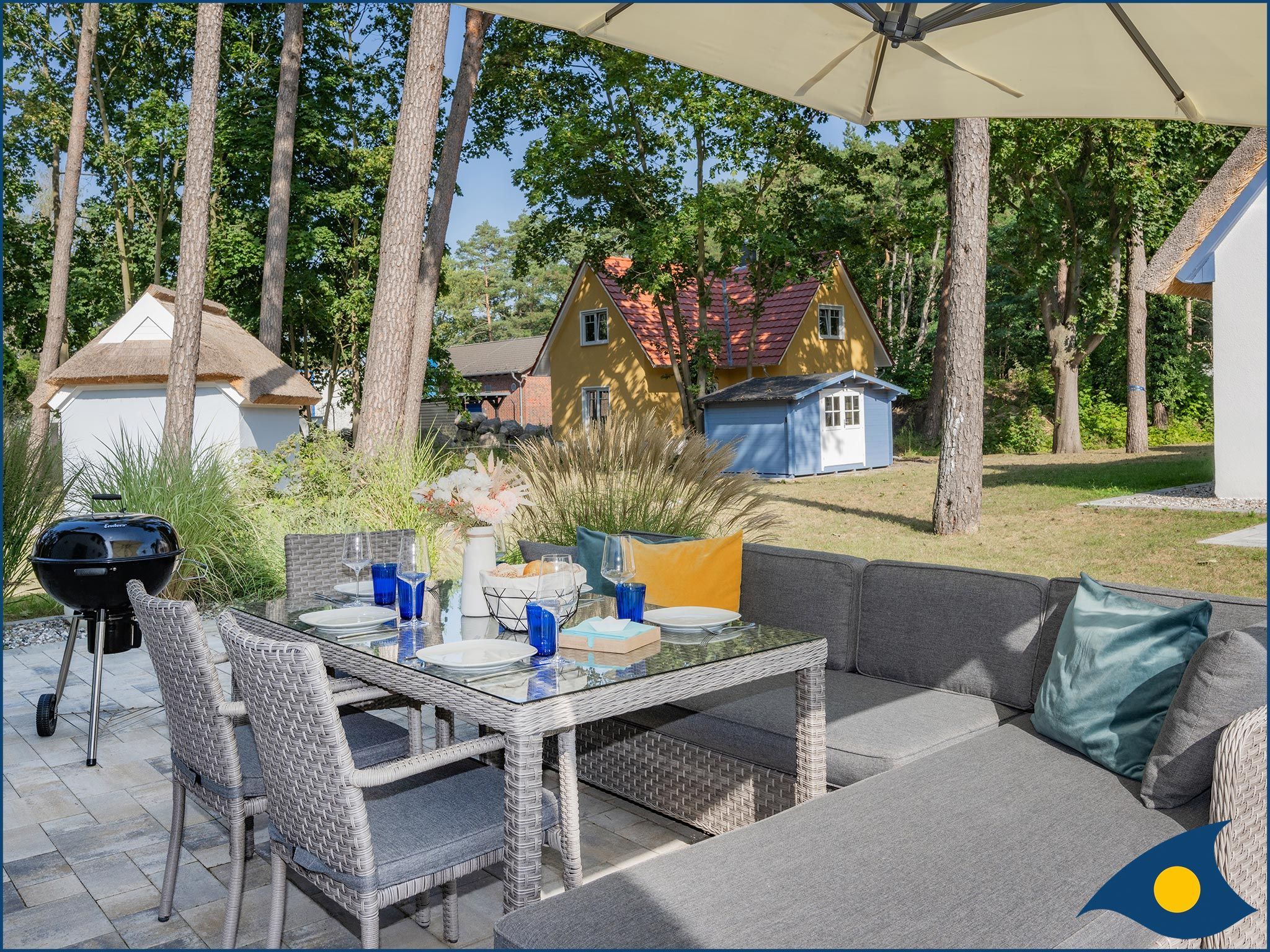 Auf der schön angelegten Terrasse mit Gartenmöbeln und Gartenliegen können Sie den Urlaubstag in vollen Zügen genießen und vor dem Kamin genüßlich ausklingen lassen.