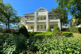Die schöne Villa aus der Gründerzeit zeichnet sich durch unverwechselbare Architektur aus. 1995 wurde sie komplett saniert. 12 Wohnungen befinden sich im Haus. Den Gästen stehen Waschmaschine/Trockner sowie eine Fahrradunterstellmöglichkeit (verschlossen) zur Verfügung. Zu jeder Ferienwohnung gehört ein Stellplatz am Haus. Zum Strand sind es 50m. Zwischen den Seebrücken in Heringsdorf und Ahlbeck gelegen erreicht man beide Ortszentren in wenigen Gehminuten.