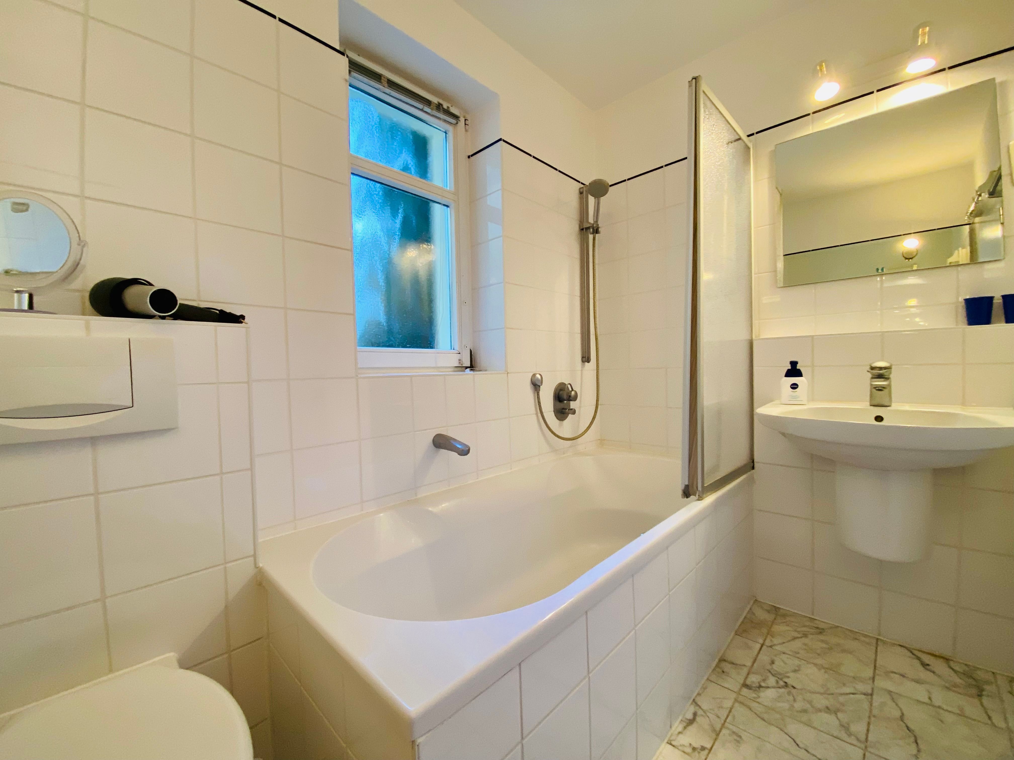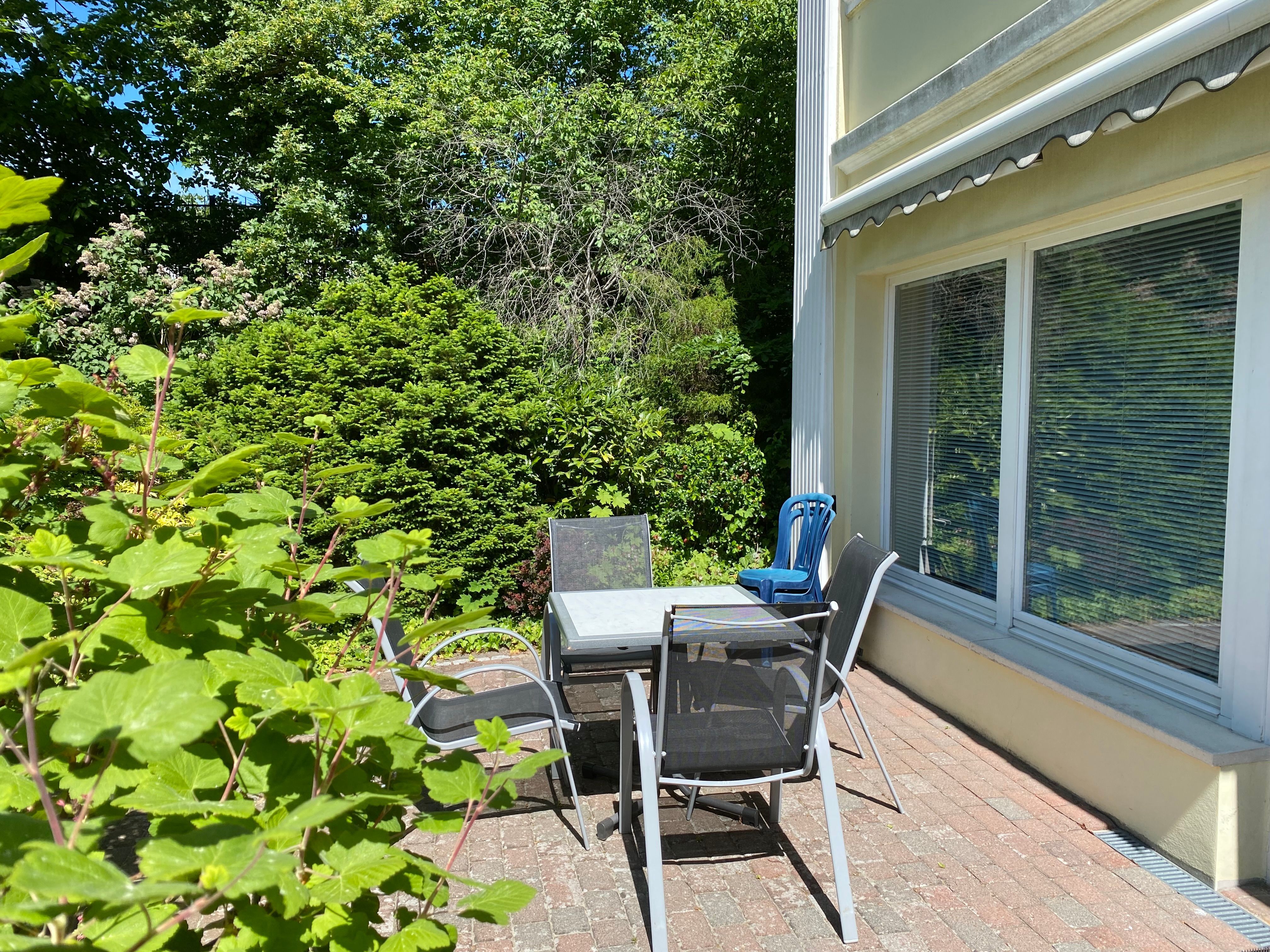 Die Ferienwohnung hat ein Schlafzimmer mit Doppelbett und 2 Schlafzimmer mit Einzelbetten bzw. Schlafcouch. Zur Ferienwohnung gehört ein Bad mit Badewanne. Genießen Sie das Leben im Freien auf der Terrasse im Grünen.