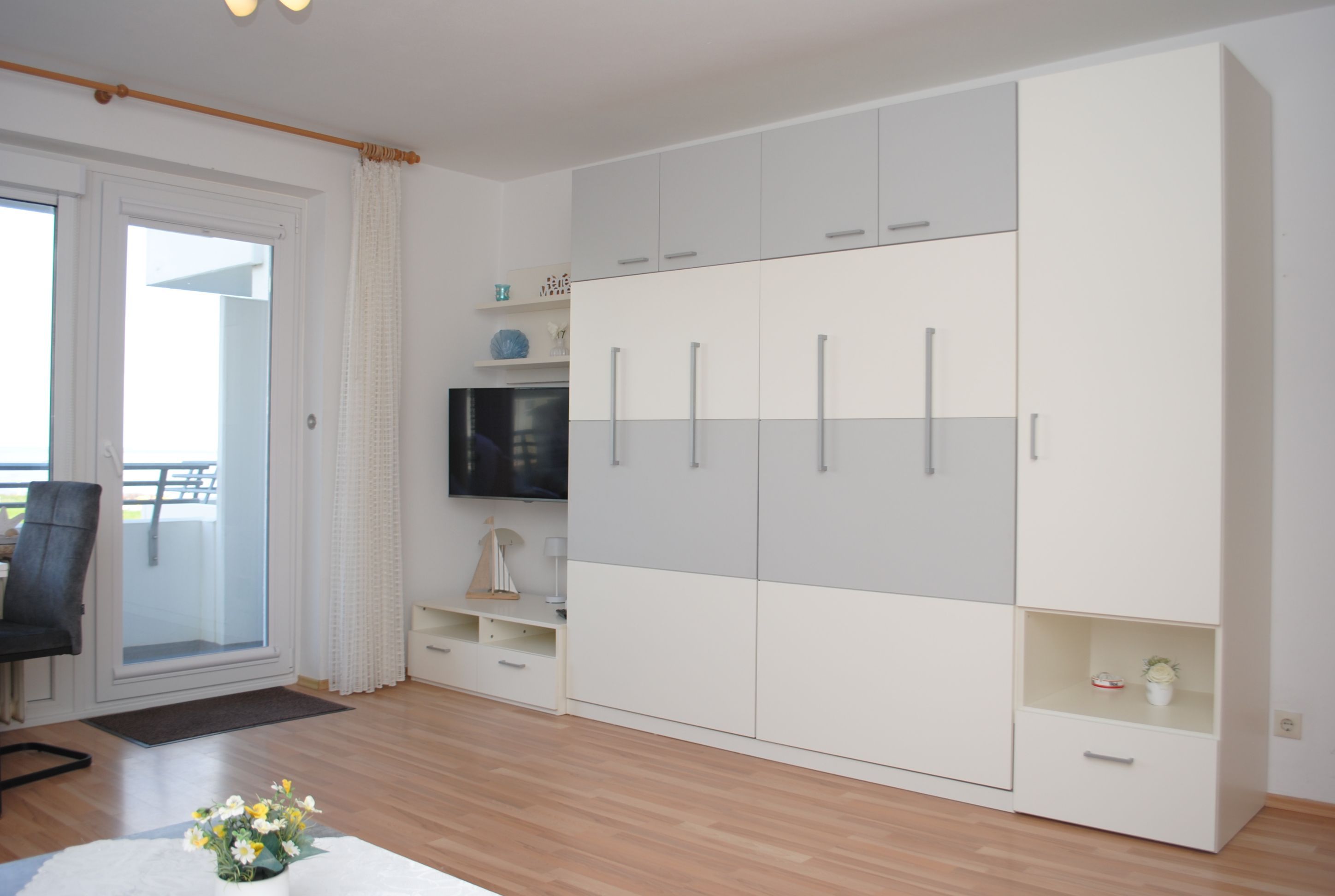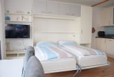 Das Apartment 204 ist ein 1-Raum-Apartment im 2. Obergeschoss für bis zu 4 Personen mit 40 qm. Der Westbalkon mit Meerblick bietet Ihnen vormittags Schatten und nachmittags Sonne .