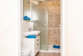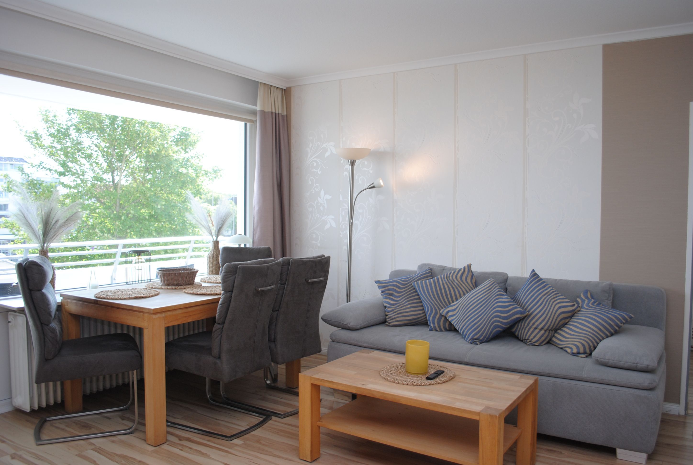 Das Apartment 212 ist ein 2-Raum-Apartment im 2. Obergeschoss für bis zu 4 Personen mit 50 qm. Der Ostbalkon mit Meerblick bietet Ihnen vormittags Sonne und nachmittags Schatten.