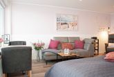 Das Apartment 311 ist ein 1-Raum-Apartment im 3. Obergeschoss für bis zu 2 Personen mit 40 qm. Der Ostbalkon mit Meerblick bietet Ihnen vormittags Sonne und nachmittags Schatten.