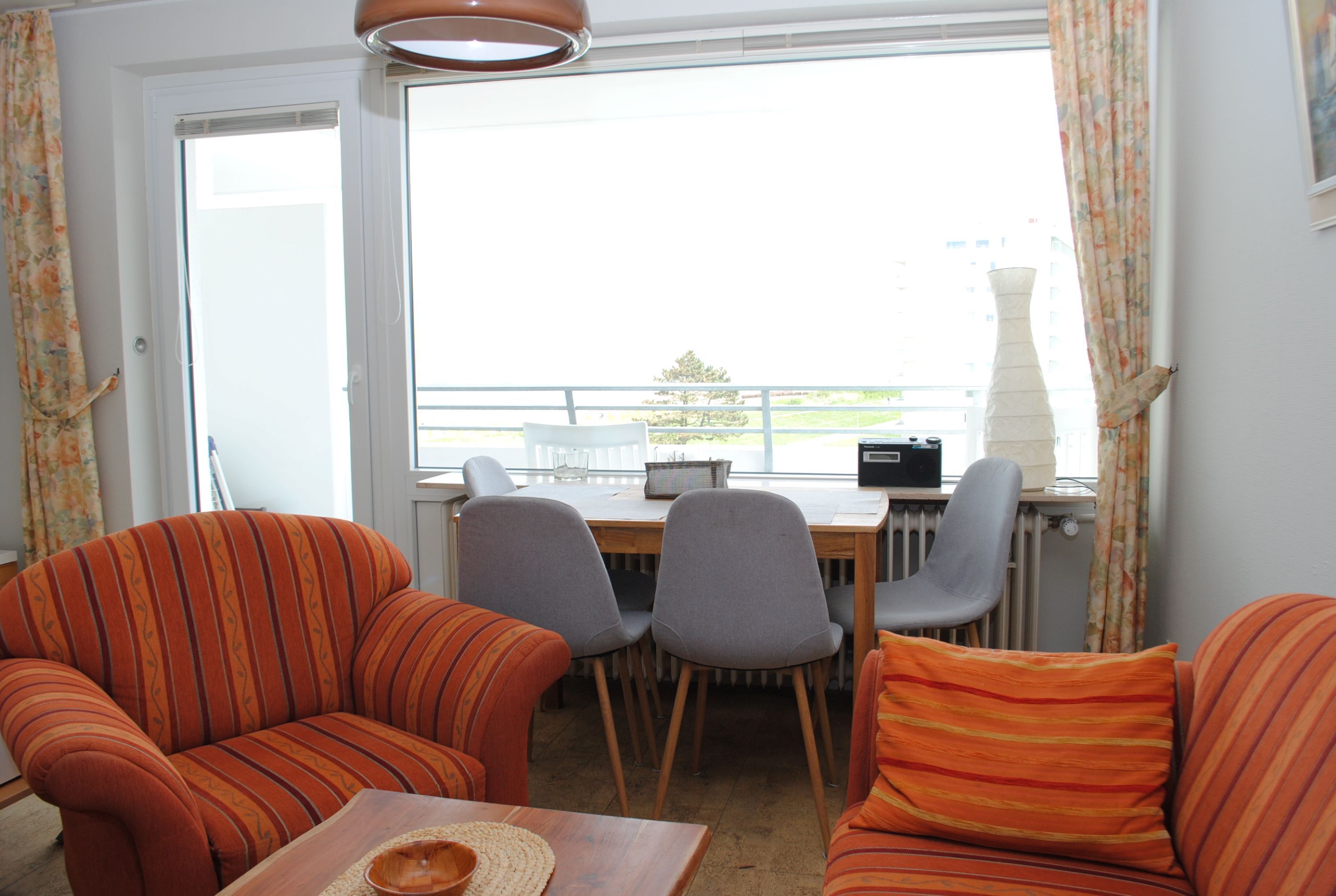 Das Apartment 512 ist ein 2-Raum-Apartment im 5. Obergeschoss für bis zu 4 Personen mit 50 qm. Der Ostbalkon mit Meerblick bietet Ihnen vormittags Sonne und nachmittags Schatten.