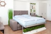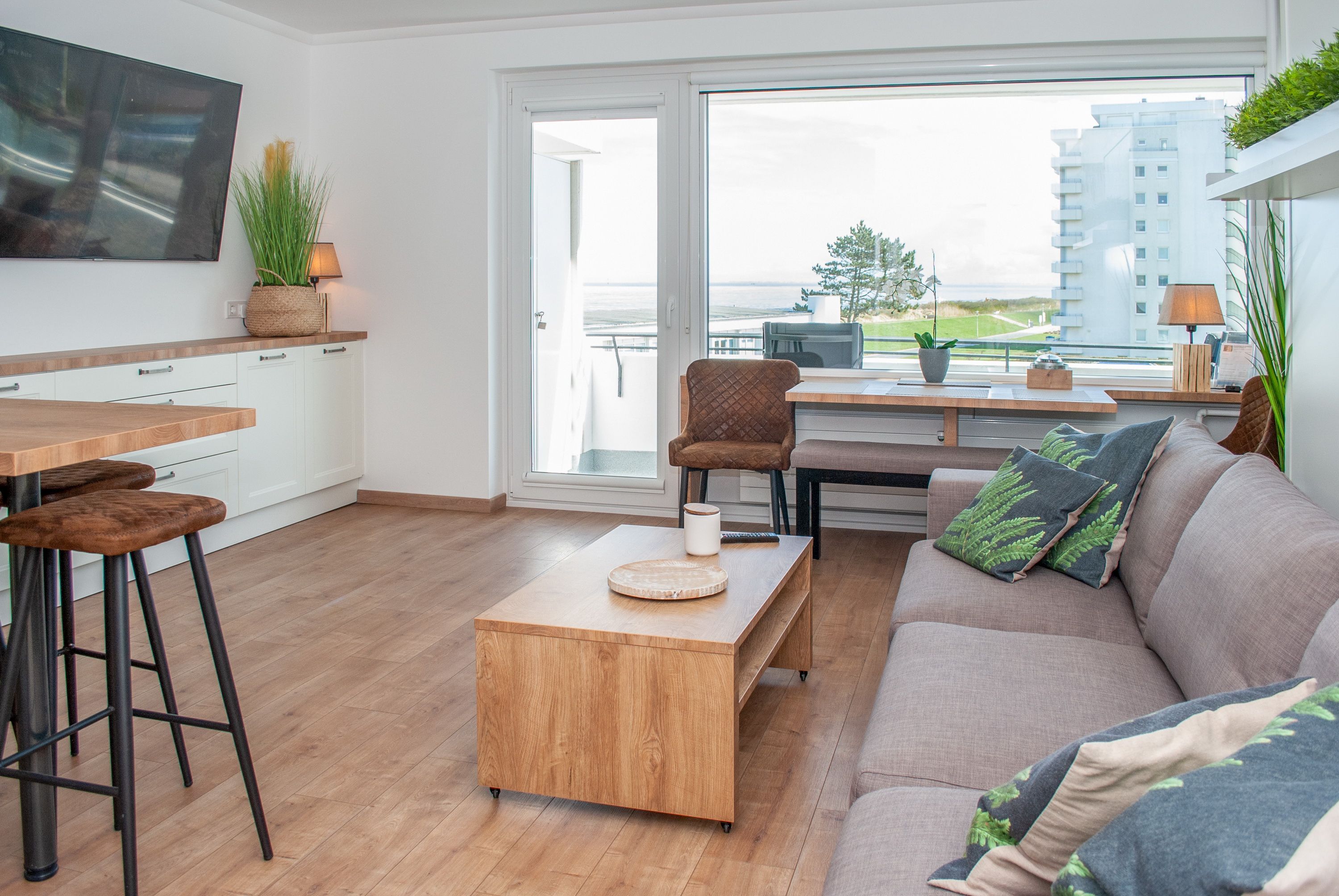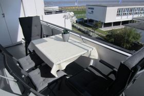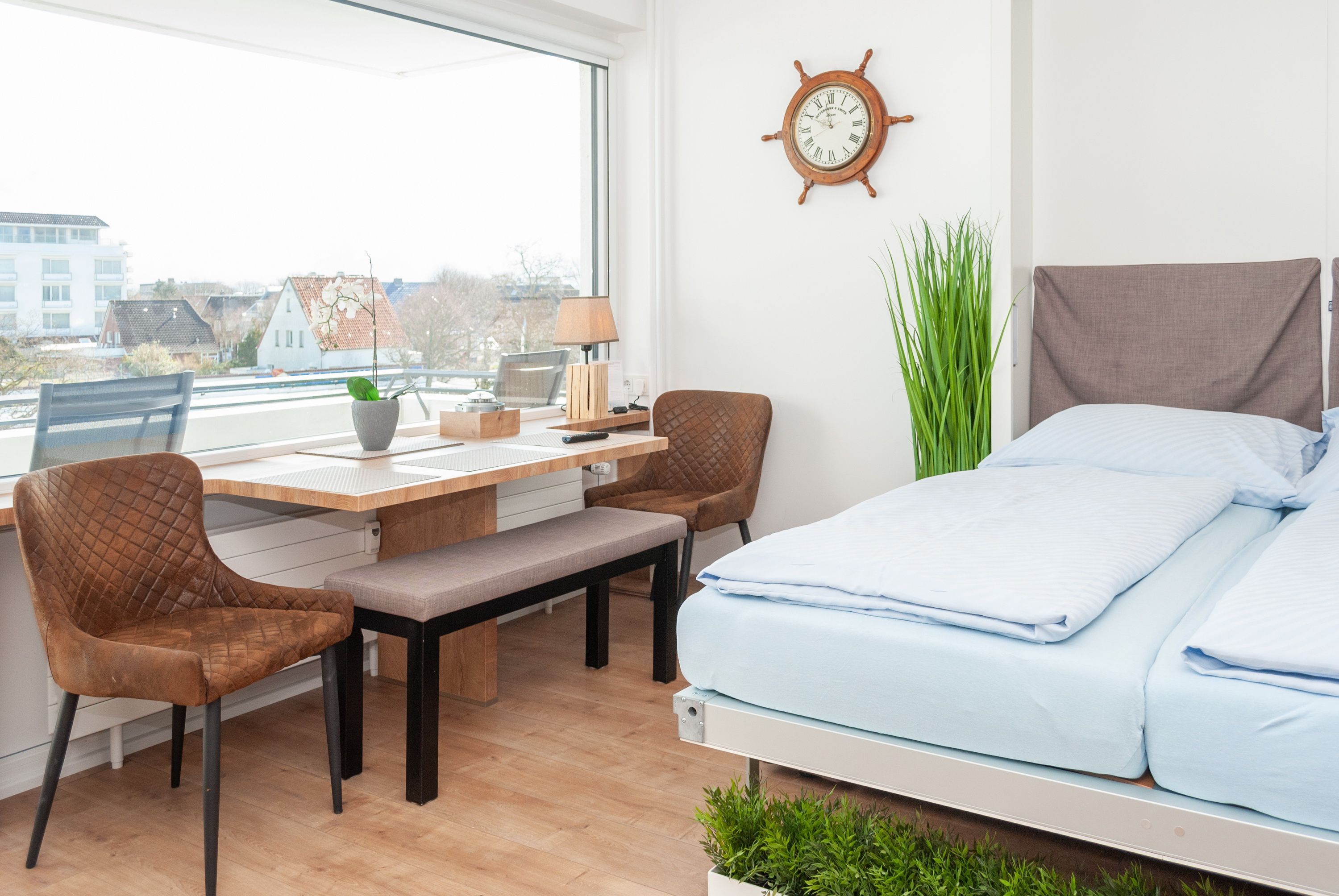 Das Apartment 310 ist ein 1-Raum-Apartment im 3. Obergeschoss für bis zu 4 Personen mit 40 qm. Der Ostbalkon mit Meerblick bietet Ihnen vormittags Sonne und nachmittags Schatten.