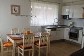 Wohnzimmer mit Couchgarnitur, Flachbild-TV, Kochnische mit Ceranfeld, Backofen, Kühlschrank, Gefrierfach, Spülmaschine, Mikrowelle, 2 Schlafzimmer je mit Doppelbett, 1 Schlafzimmer mit Einzelbett, 2 x Bad mit befahrbarer Dusche, Waschbecken, WC