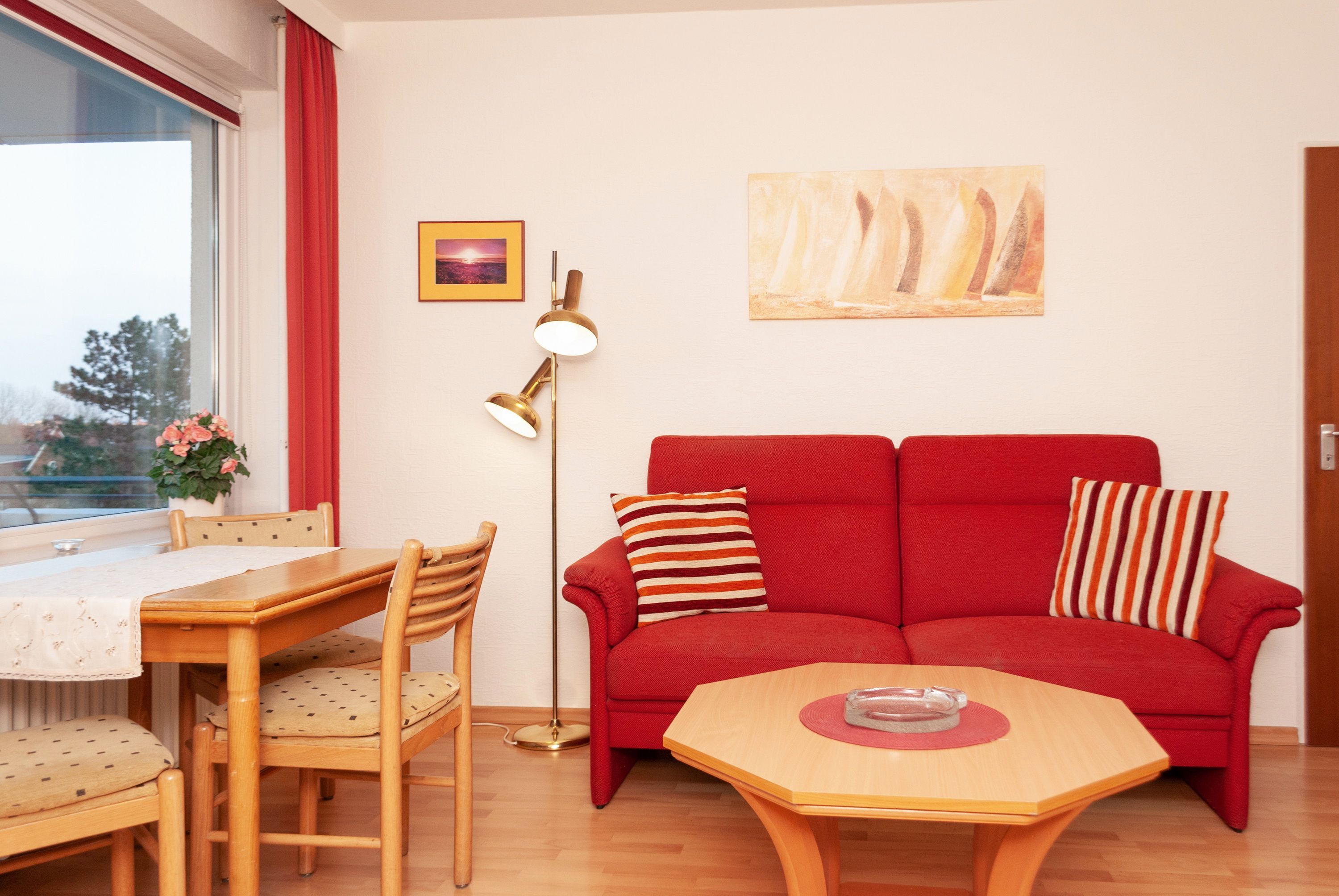 Das Apartment 412 ist ein 2-Raum-Apartment im 4. Obergeschoss für bis zu 4 Personen mit 50 qm. Der Ostbalkon mit Meerblick bietet Ihnen vormittags Sonne und nachmittags Schatten.
