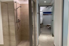 Das Badezimmer ist mit einer Dusche und Föhn ausgestattet, Bademäntel und Handtücher werden kostenfrei zur Verfügung gestellt.