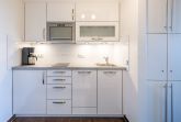 Vom Esstisch am Fenster genießen Sie schon beim Frühstück den atemberaubenden Ausblick auf die vorbeifahrenden Krabbenkutter, Segelschiffe und Luxus Liner, die zum Greifen nah scheinen. Ein großer Metz LCD-TV sorgt auch an einem Fernsehabend für beste Unterhaltung. Die separate Küche ist mit einem 2 Plattenherd, einem Geschirrspüler sowie einem Kühlschrank mit Gefrierfach ausgestattet. Eine Rarität ist der großzügige Balkon mit spektakulärem Meerblick, der bei sonnigem Wetter zum Verweilen einlädt. Zur Ferienwohnung gehört ein modernes Bad mit Dusche und WC.