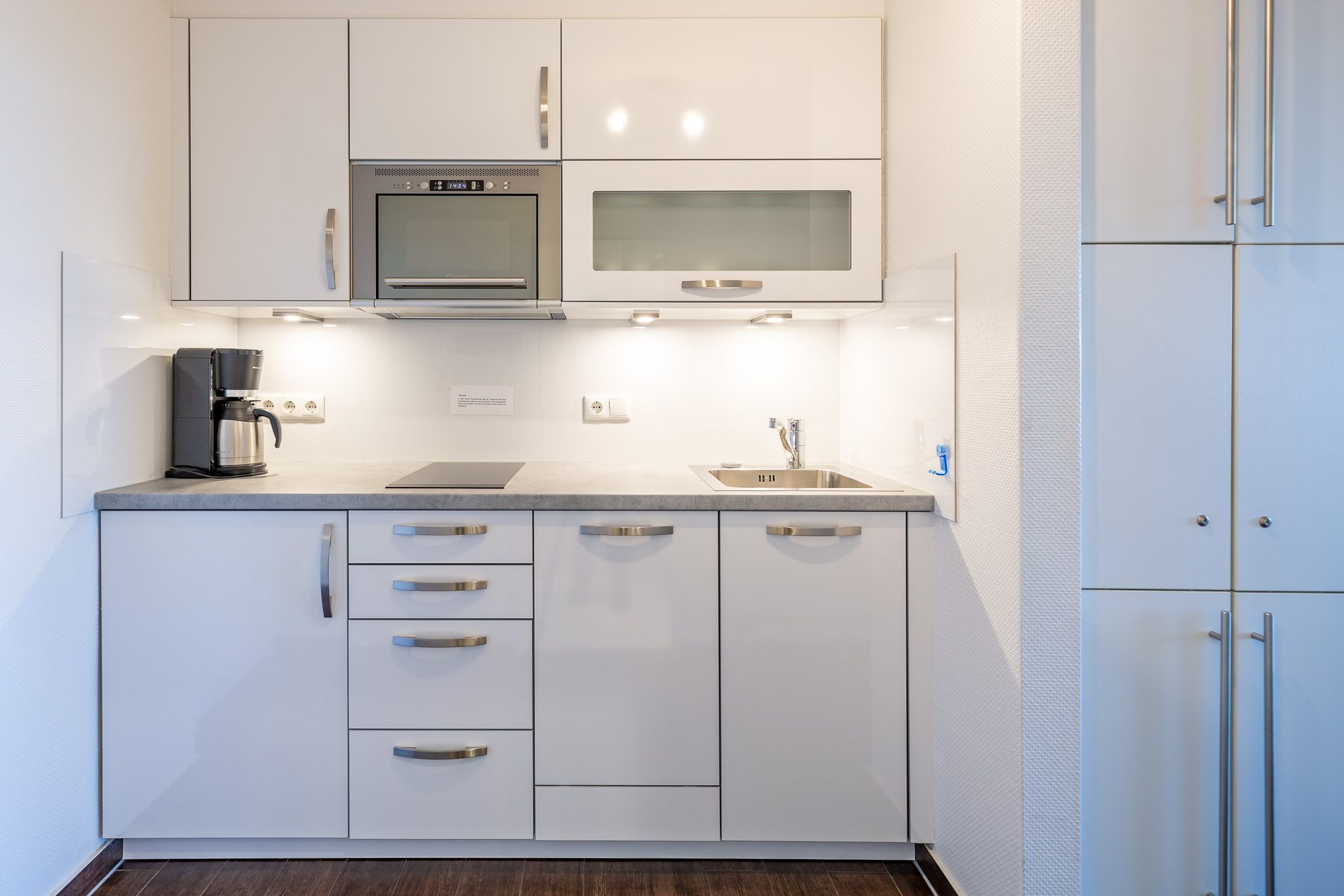 Schiffchen anstatt Schäfchen zählen. Morgens wachen Sie auf und sehen das Meer. Dafür müssen Sie noch nicht einmal aus Ihrem Bett aufstehen. Die 2-Zimmer Ferienwohnung bietet im separaten Schlafzimmer ein Doppelbett (2x90x200) mit rückenschonender Komfortliegehöhe, hochwertigen Matratzen und spektakulärem Meerblick. Genießen Sie schon beim Aufstehen den atemberaubenden Meerblick. Alle Fenster sind mit elektrischen Außenjalousien ausgestattet, so dass Sie nicht von der Morgensonne geweckt werden.