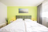 Ferienwohnung 210 verfügt über ein separates Schlafzimmer mit modernem Boxspringbett sowie ein Fenster zum Belüften. Der LCD Fernseher im Wohnbereich sorgt auch an trüben Tagen für beste Unterhaltung. Eine kleine, komplett ausgestattete Küchenzeile ist im Wohnbereich integriert. Das modern sanierte Bad mit Dusche und WC verfügt über ein Fenster zum Belüften. Der Wohnung ist ein PKW-Stellplatz zugeordnet.