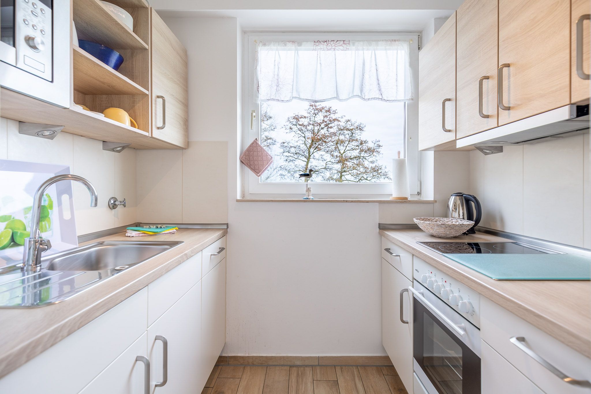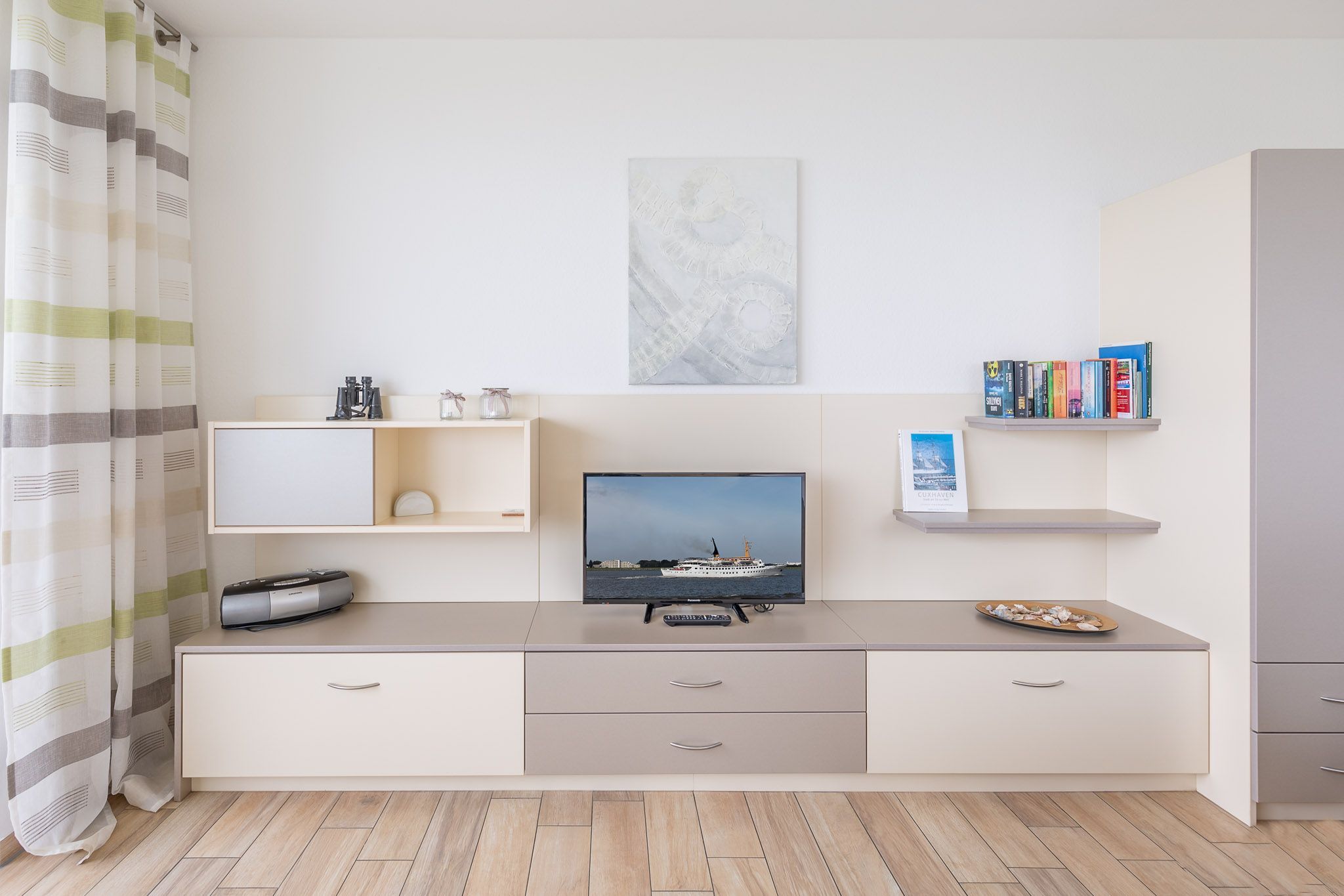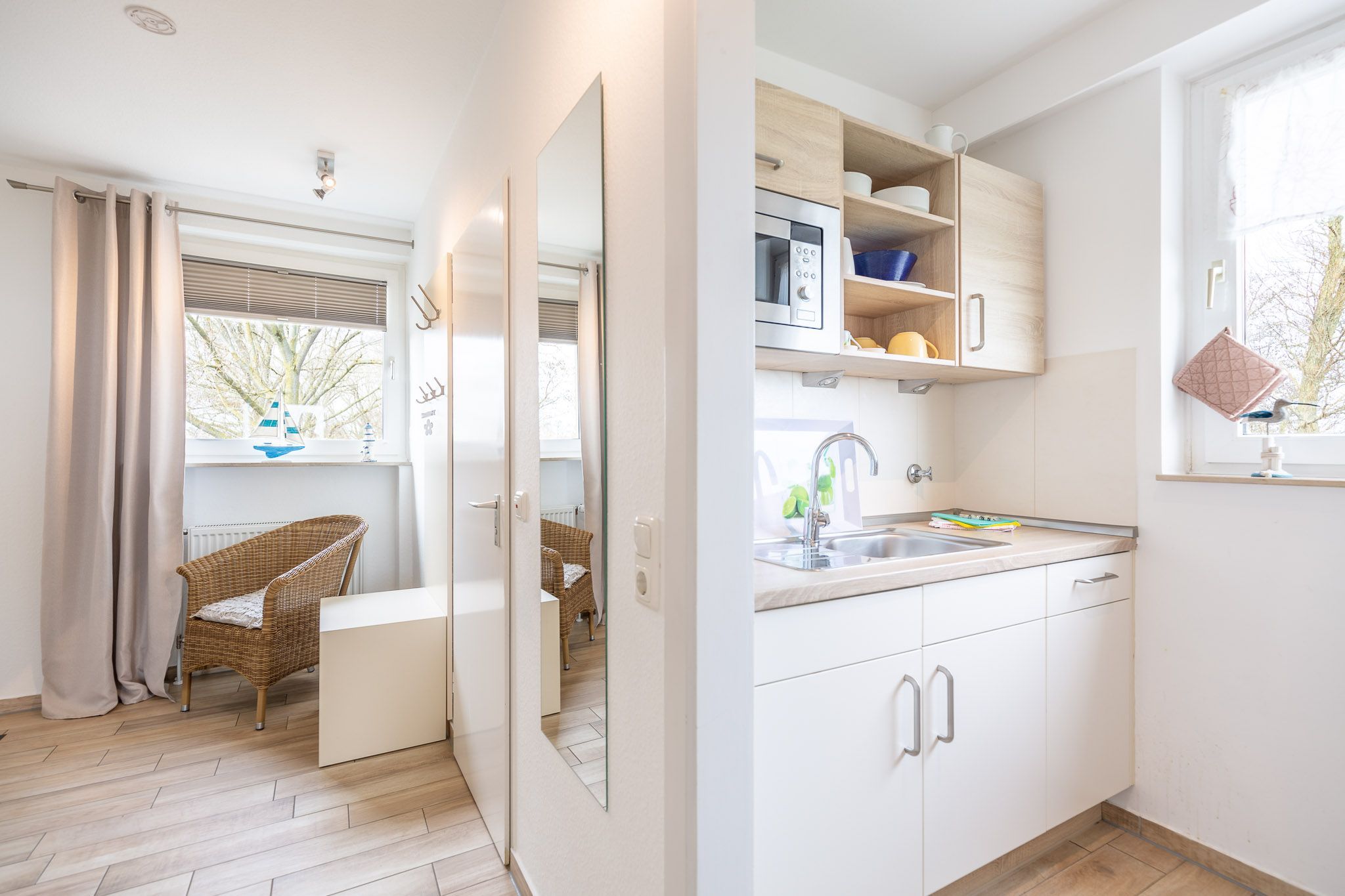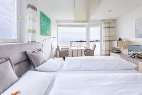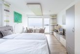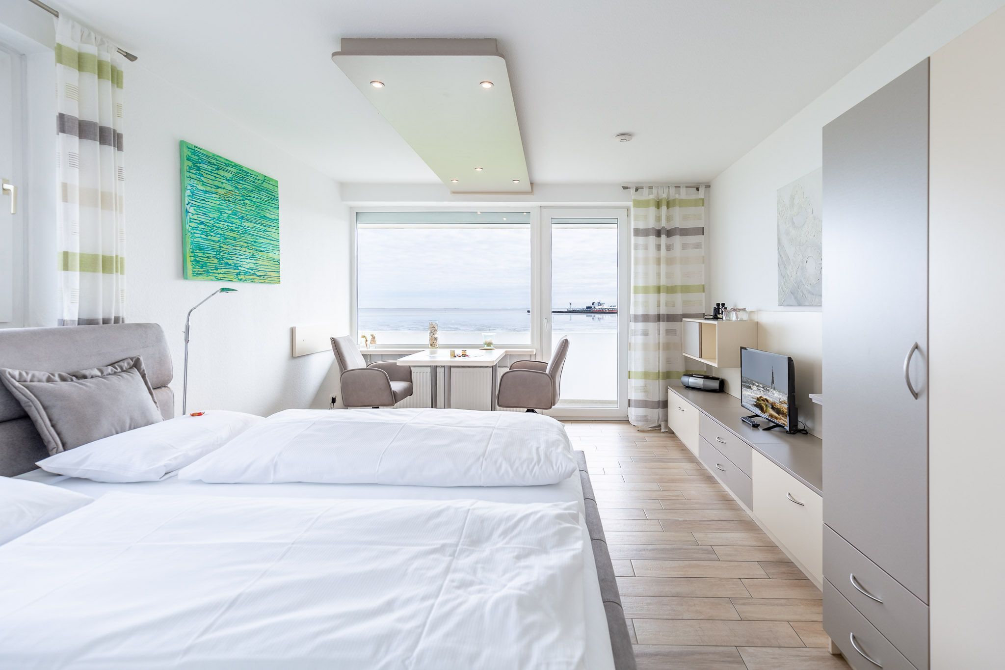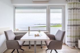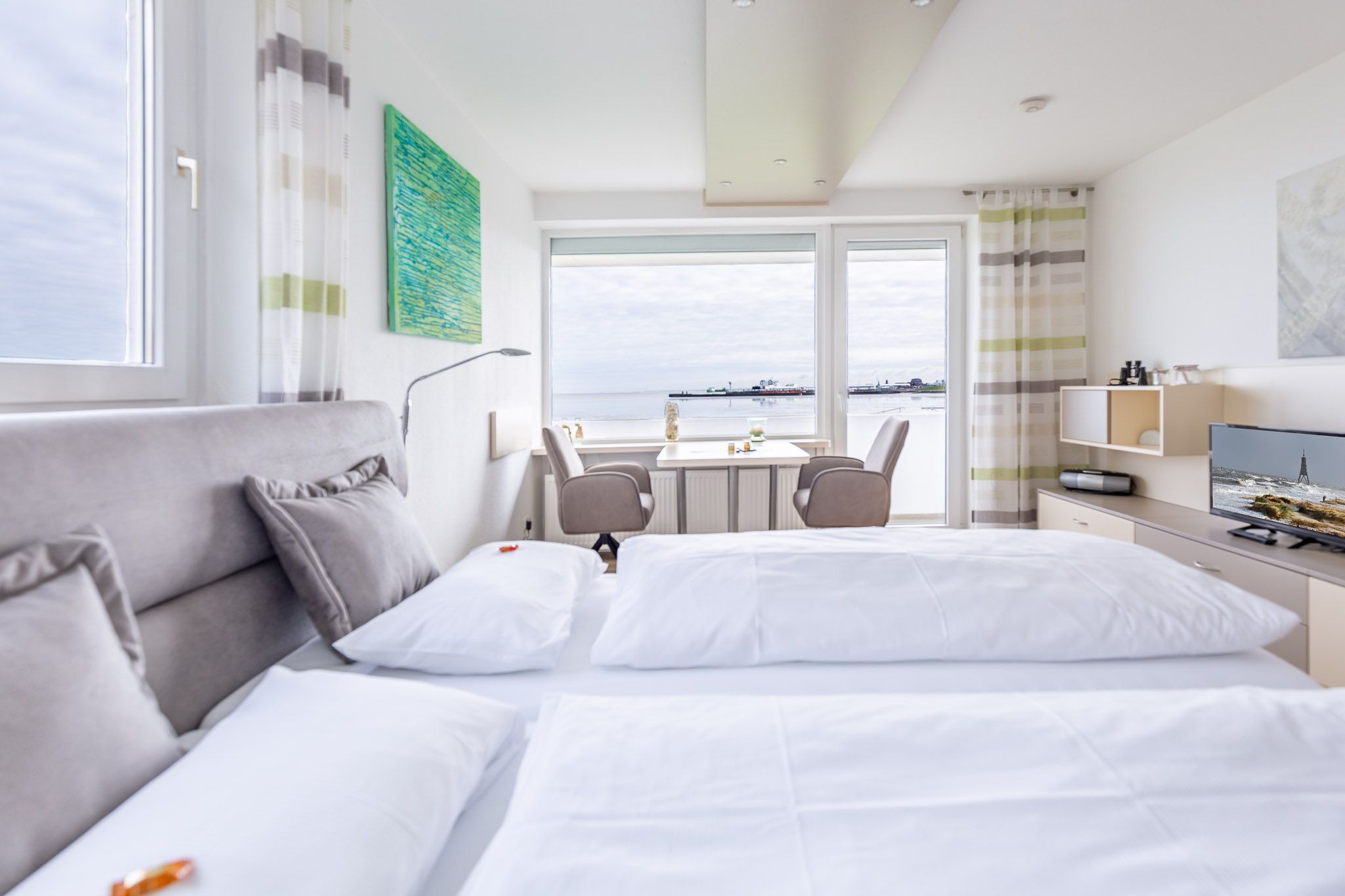 Ferienwohnung Nautic 324 ist eine echte Rarität. Die 40 m² Eck-Ferienwohnung bietet einen atemberaubenden Blick auf den Weltschifffahrtsweg und den Hafen. Der Esstisch am Fenster gewährleistet bereits beim Frühstück einen atemberaubenden Meerblick. Ein LCD Fernseher sorgt darüber hinaus an einem Fernsehabend für beste Unterhaltung. Die separate Küche mit Fenster bietet neben einem 4 Plattenherd, einen Backofen, einen Geschirrspüler und eine Mikrowelle.