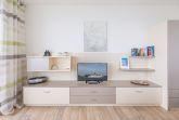 Der kombinierte Wohn-/Schlafbereich ist mit einem Doppelbett ausgestattet. Außerdem ermöglicht ein separates Einzelbett im Vorraum getrenntes Schlafen. Das modern sanierte Bad mit Dusche und WC verfügt über ein Fenster zum Belüften. Auch der Balkon bietet einen spektakulären Meerblick. Zur Wohnung gehört ein KFZ-Stellplatz.