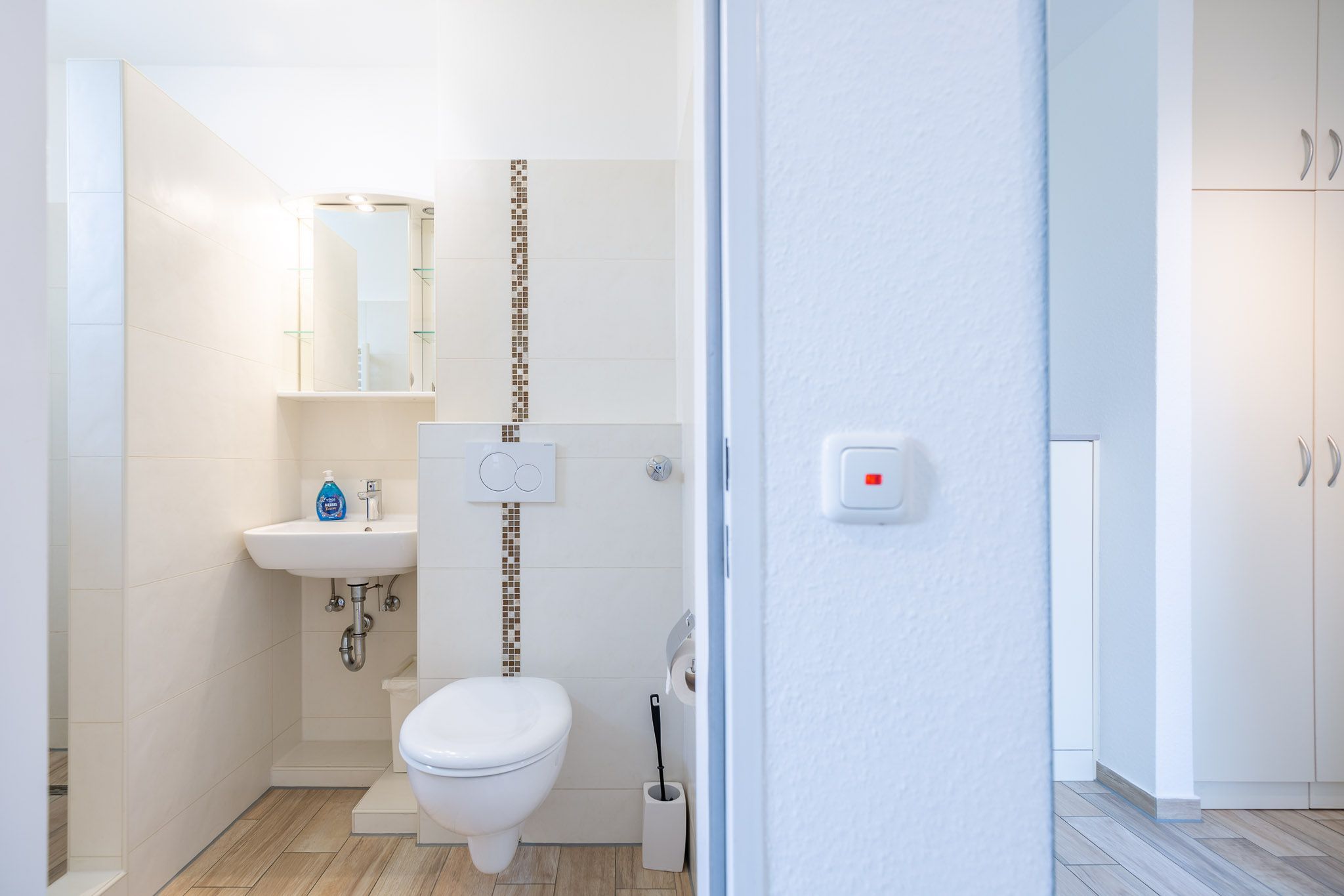 Tolle Ausblicke gibt es in Cuxhaven reichlich. Doch dieser atemberaubende Elbblick ist unschlagbar. Für alle, die die Umgebung aktiv erkunden möchten, steht eine gemeinschaftlich genutzte Fahrradgarage zur Verfügung, die Sie sich mit einer weiteren Wohnung teilen.