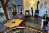 Im urigen Wohn- und Kochbereich im Erdgeschoss ist das historische Balkenkonstrukt erhalten worden. Das Zentrum der Wohnung bildet der massive Esstisch. Echte Wohlfühlatmosphäre schaffen der Kaminofen und die Empore mit Ausblick über die Wiesen und Weiden der Umgebung. Die beiden Badezimmer befinden sich ebenfalls im Erdgeschoss. Diese sind komplett modernisiert . Die Küche ist voll ausgestattet mit Kaffeemaschine, Mikrowelle, Backofen, Ceranfeld Kochstellen, Spülmaschine und Kühlschrank.