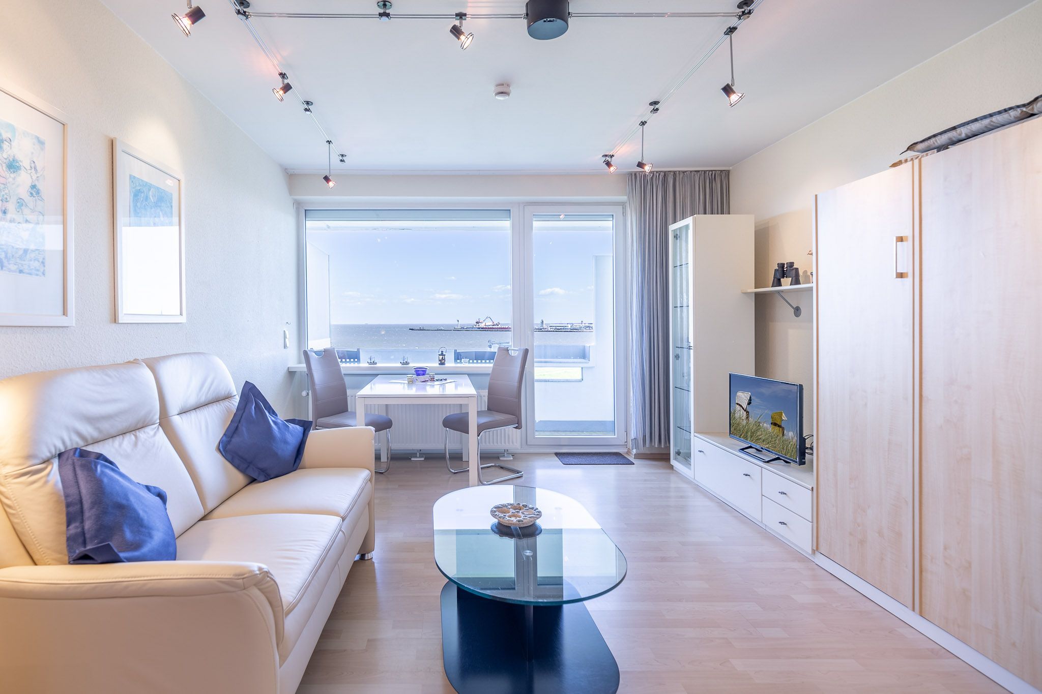 Was für eine Kulisse! Aus der 5. Etage haben Sie jederzeit das muntere Treiben auf dem Weltschifffahrtsweg im Blick - ein echtes Erlebnis. Genießen Sie den Ausblick auf vorbeifahrende Kutter, Kreuzfahrer und Großsegler, die sich wie eine Perlenschnur aneinander reihen.