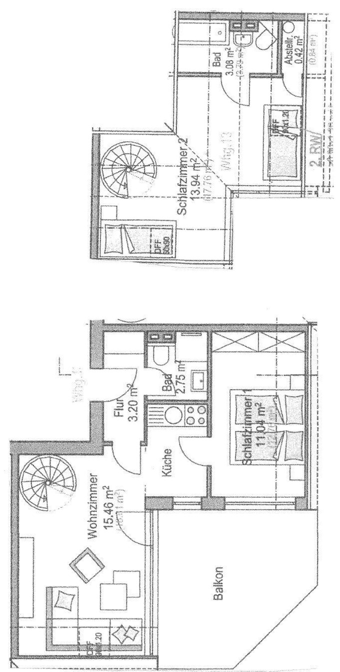 EG: Doppelbett 90 cm x 200 cm, Schränke und Kommode